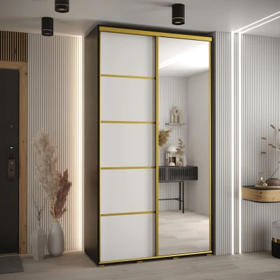 Šatní skříň YVONA 5 - 130/45 cm, černá / bílá / zlatá