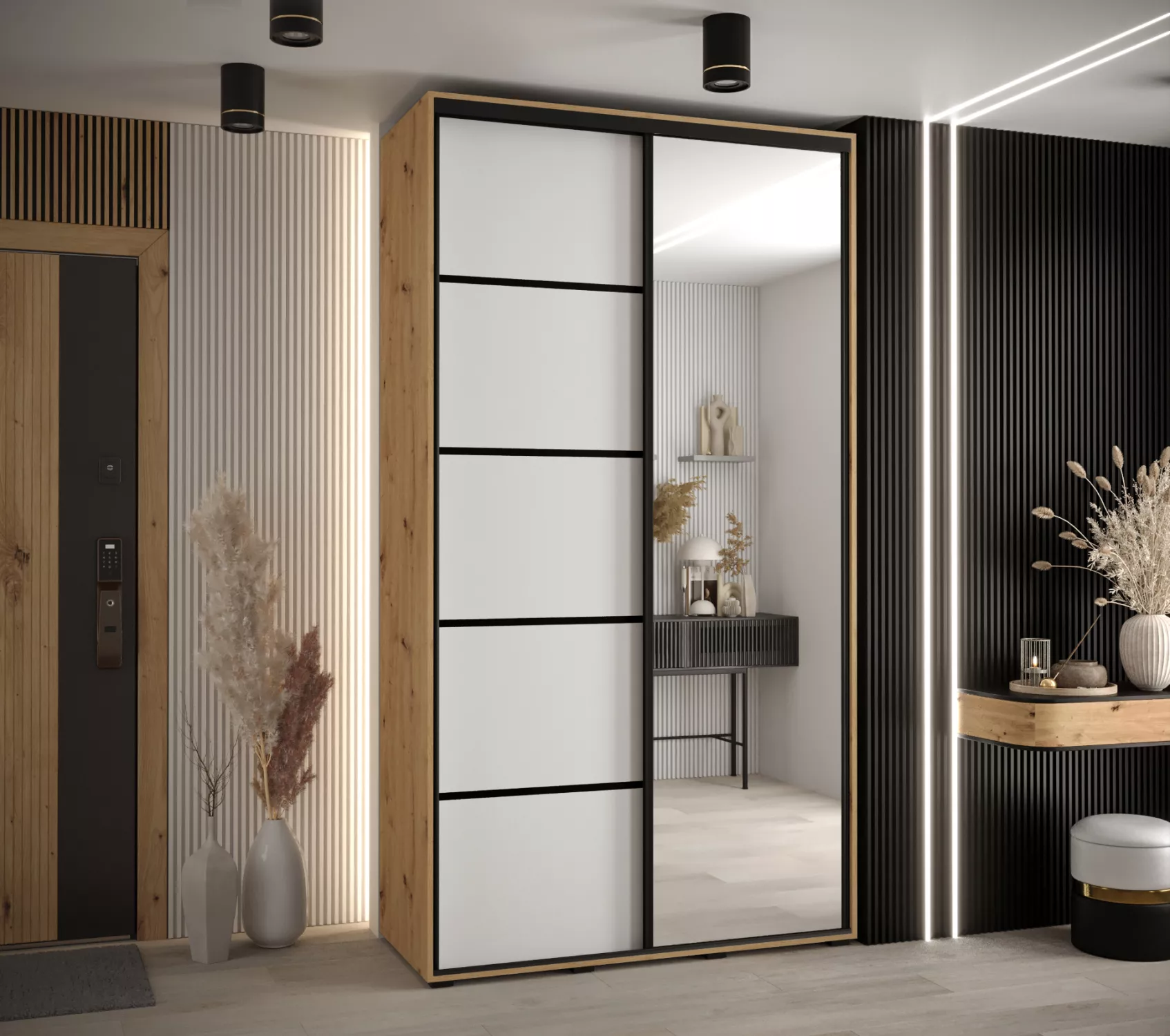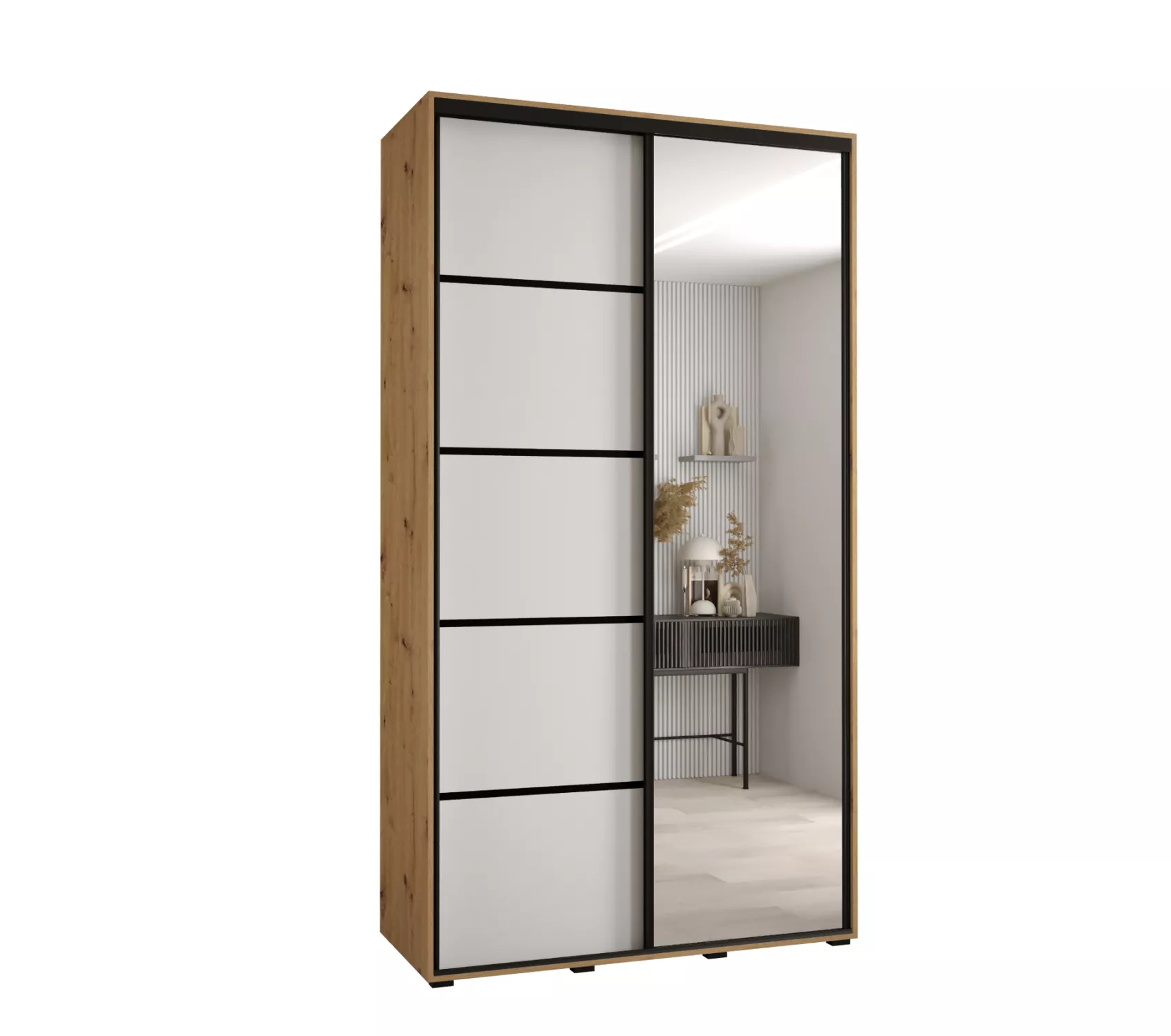 Šatní skříň YVONA 5 - 130/45 cm, dub artisan / bílá / černá