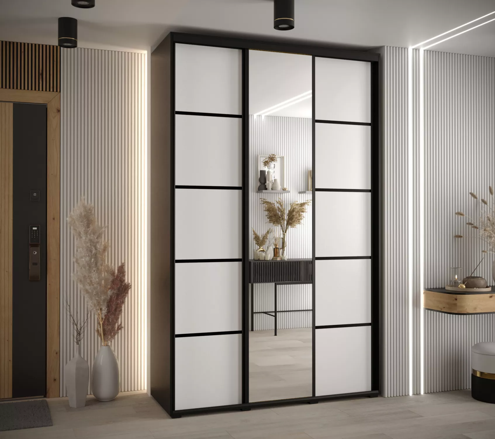 Šatní skříň YVONA 5 - 150/45 cm, černá / bílá / černá