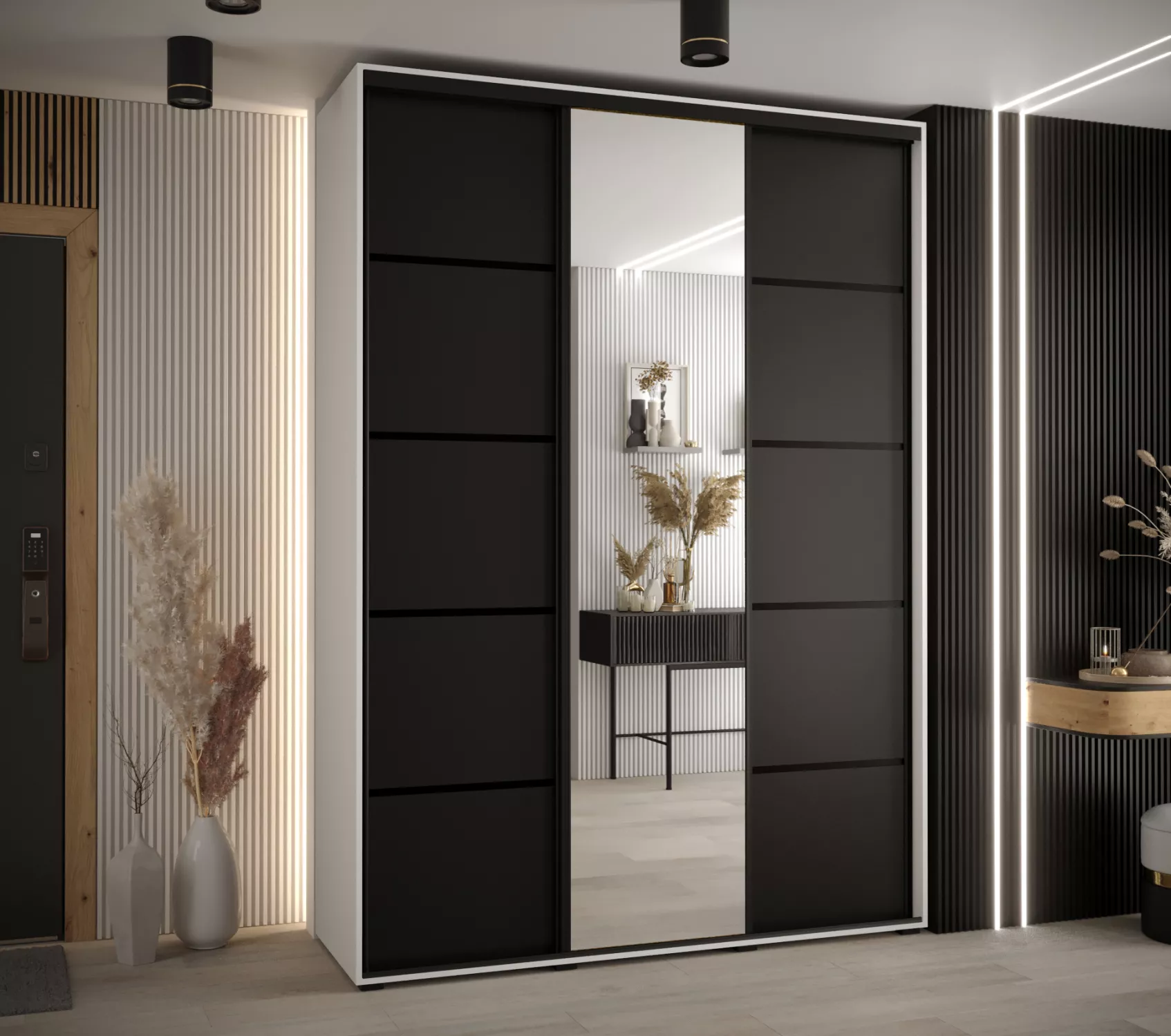 Šatní skříň YVONA 5 - 170/45 cm, bílá / černá / černá