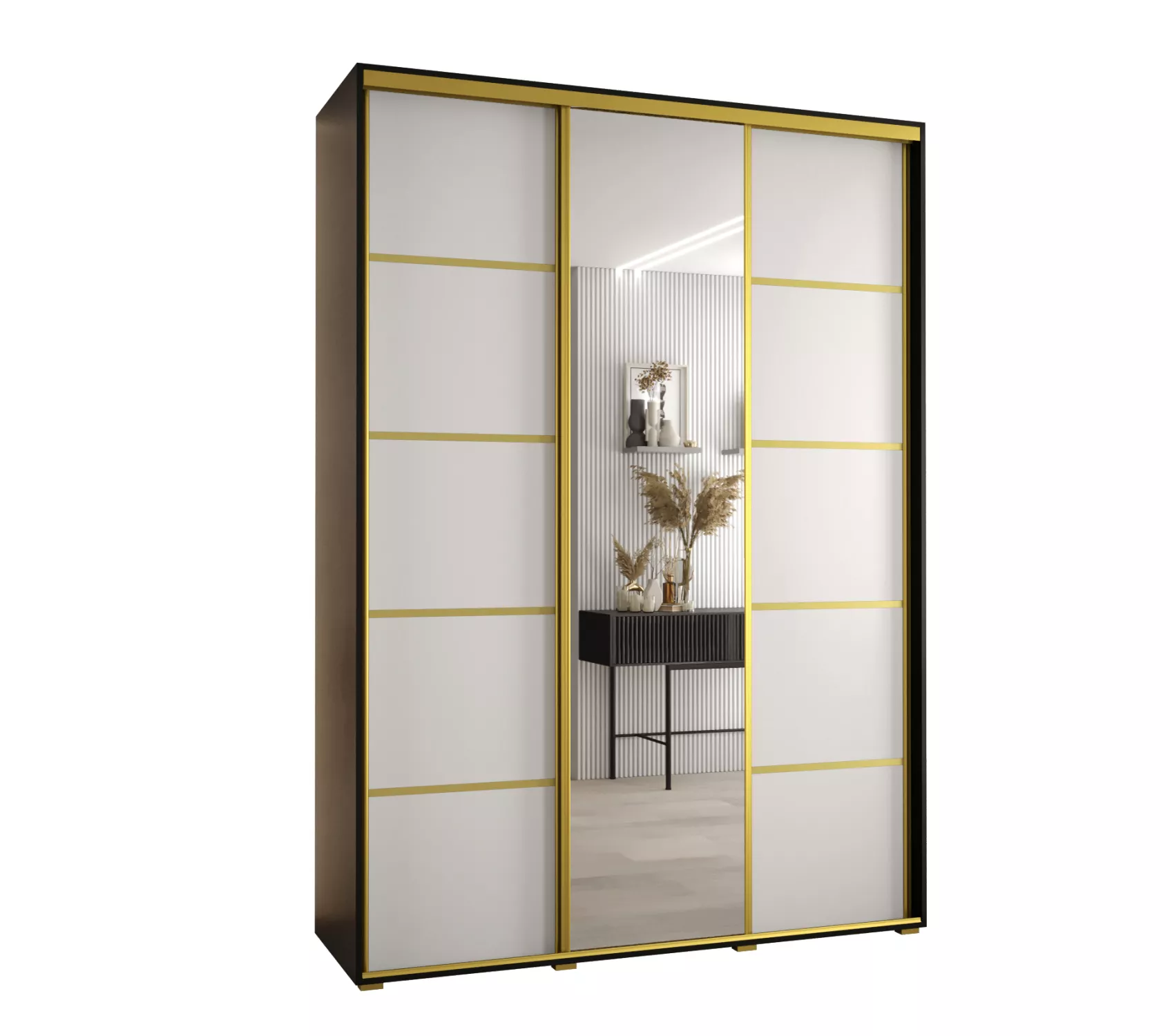 Šatní skříň YVONA 5 - 170/45 cm, černá / bílá / zlatá