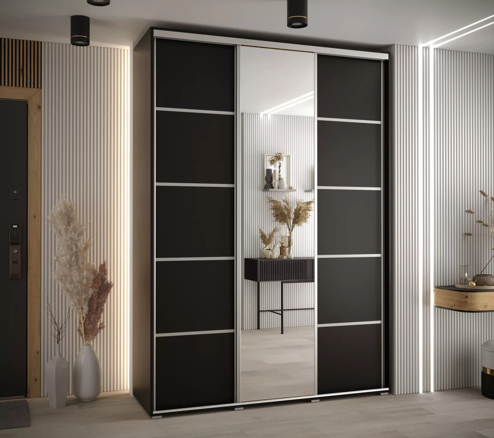 Šatní skříň YVONA 5 - 170/45 cm, černá / stříbrná
