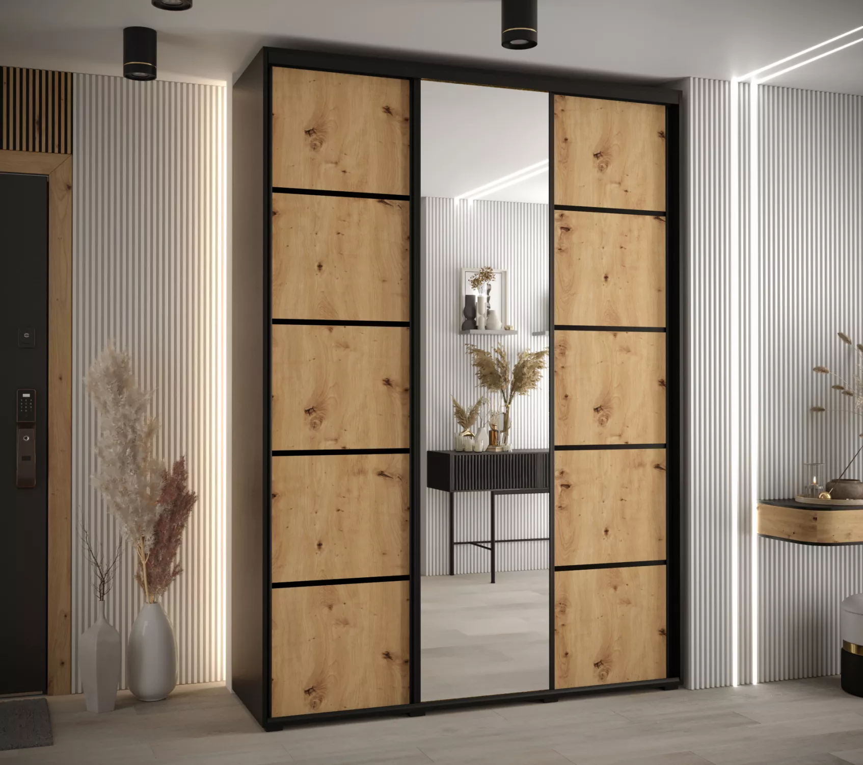 Šatní skříň YVONA 5 - 180/45 cm, černá / dub artisan / černá