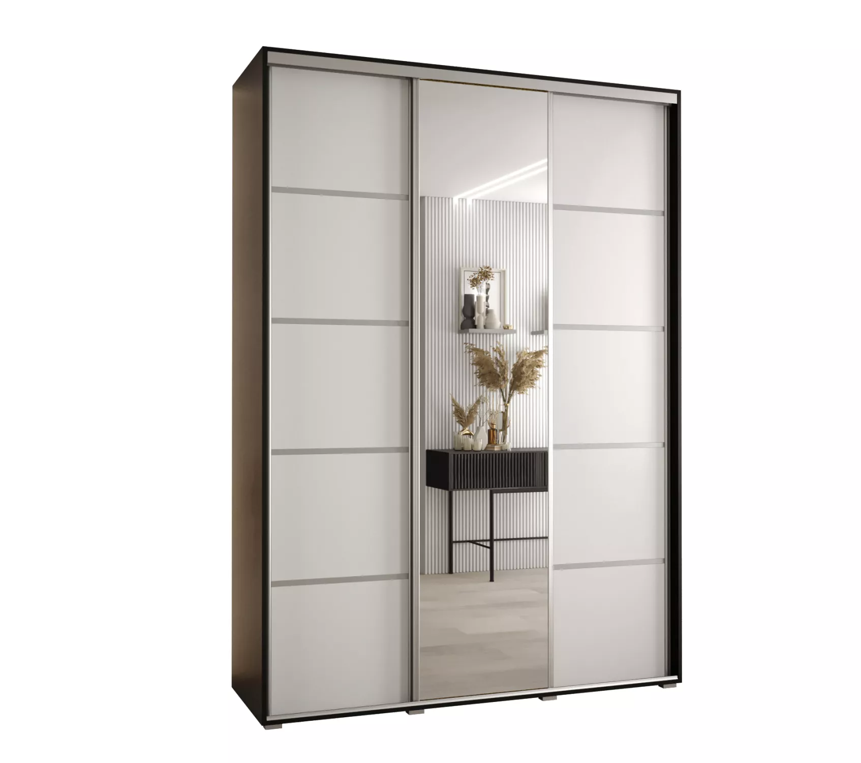 Šatní skříň YVONA 5 - 180/45 cm, černá / bílá / stříbrná