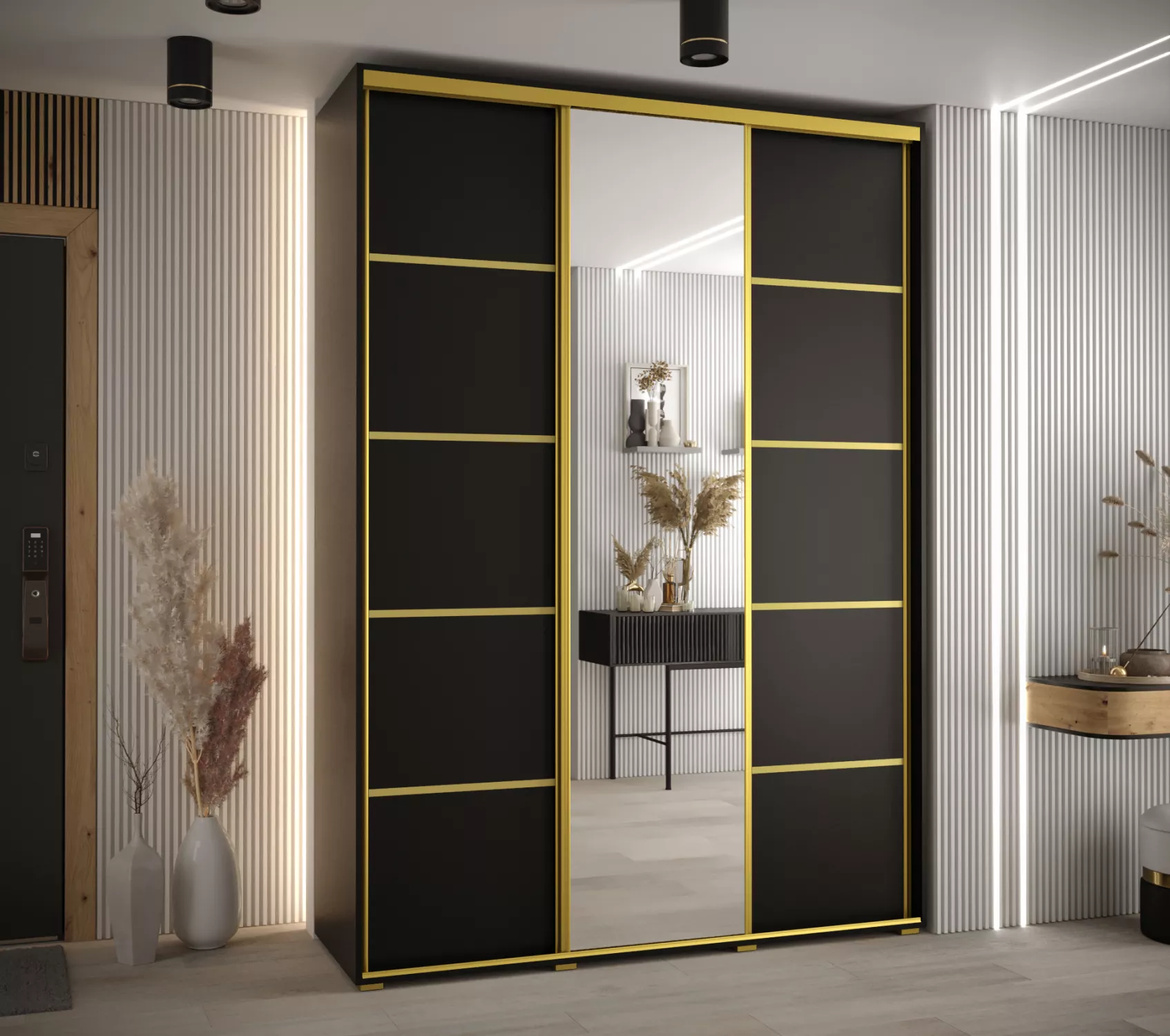 Šatní skříň YVONA 5 - 180/45 cm, černá / zlatá