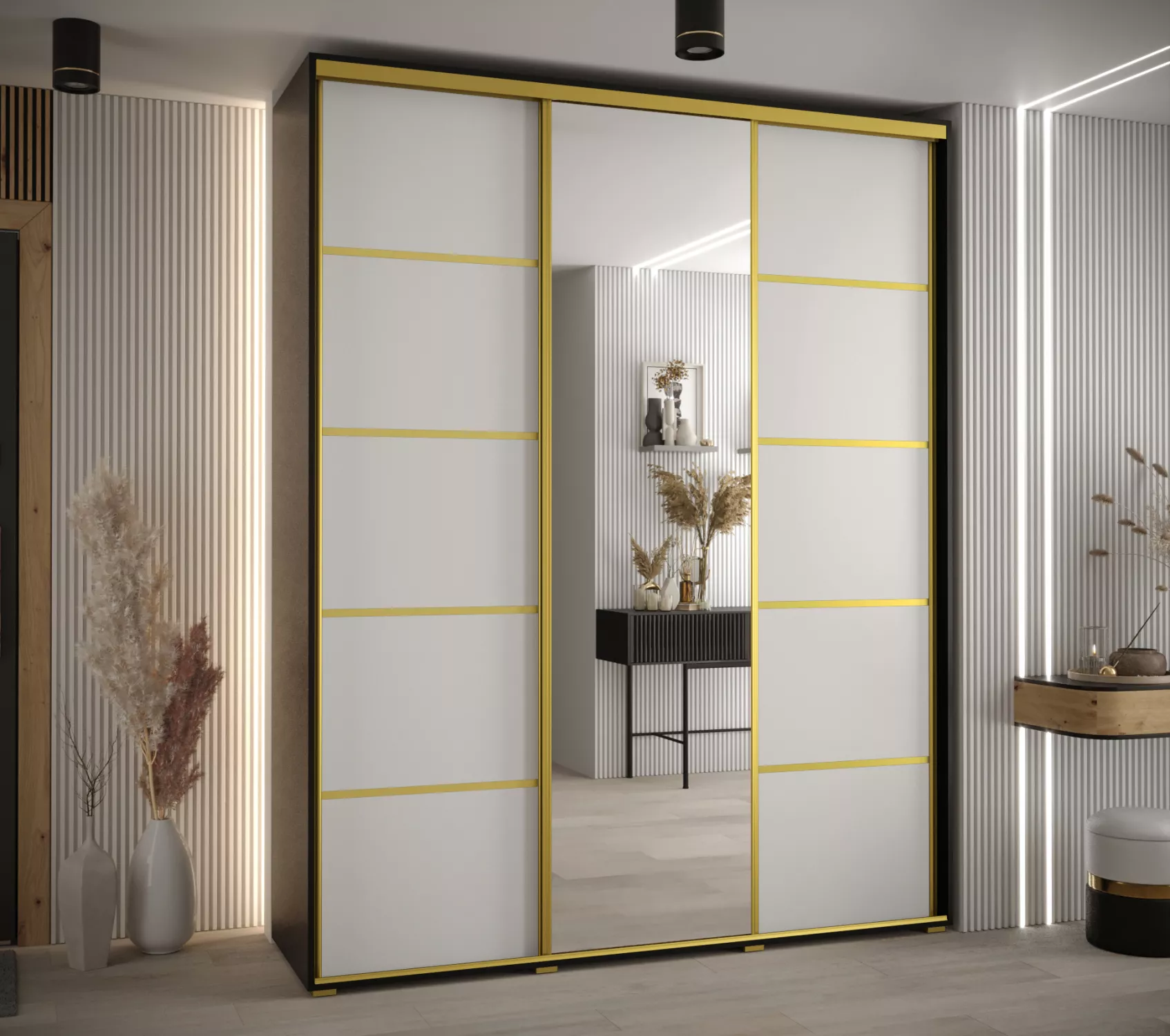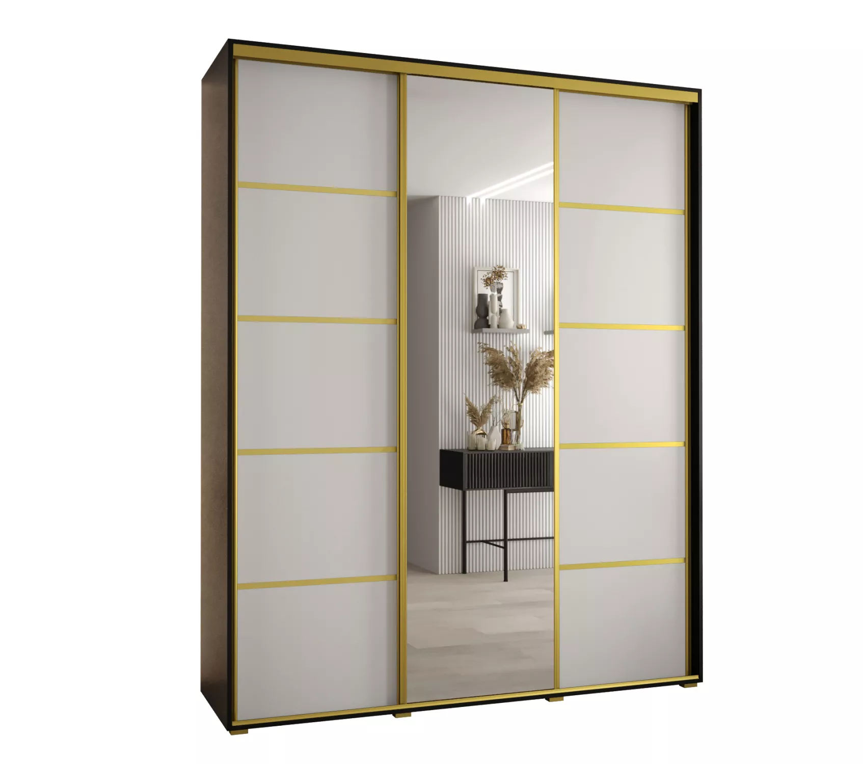 Šatní skříň YVONA 5 - 190/45 cm, černá / bílá / zlatá