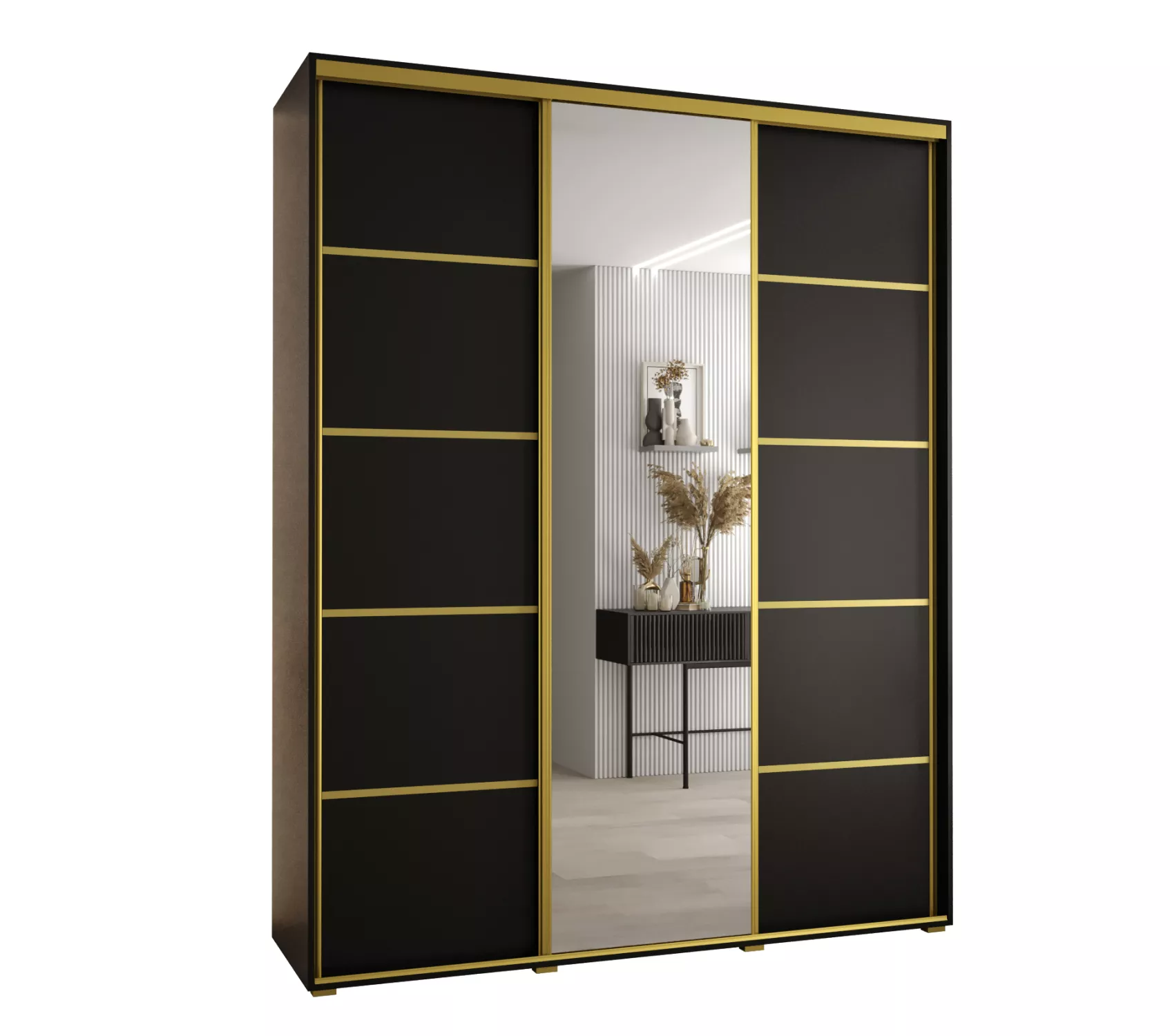 Šatní skříň YVONA 5 - 190/45 cm, černá / zlatá