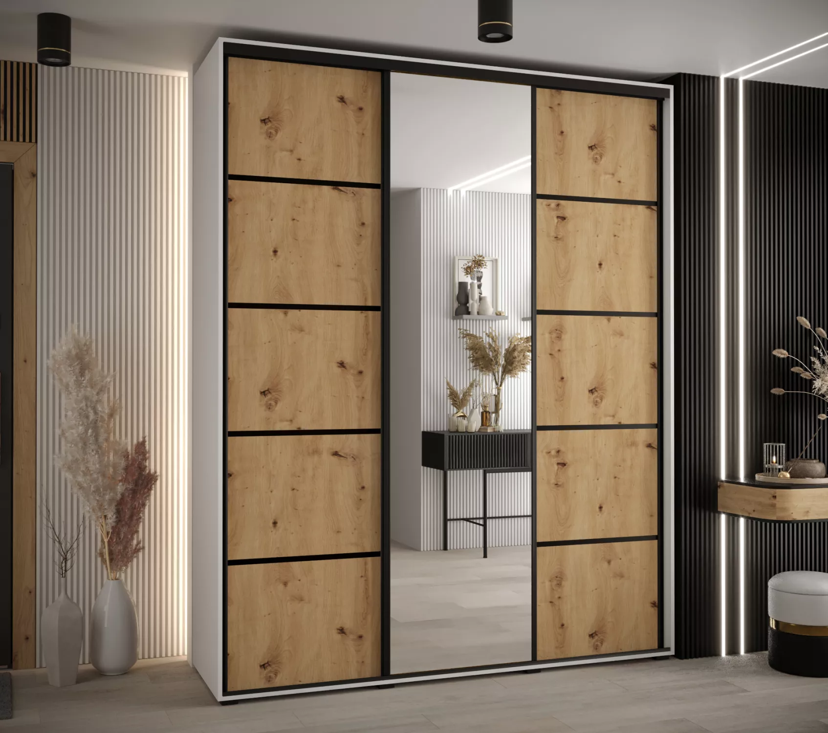 Šatní skříň YVONA 5 - 200/45 cm, bílá / dub artisan / černá
