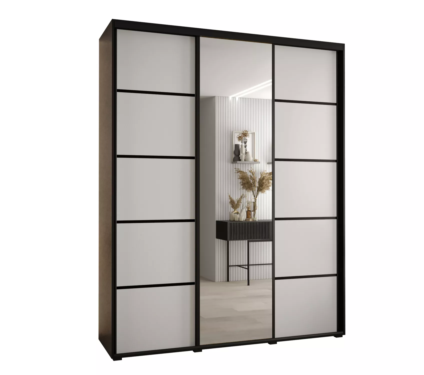 Šatní skříň YVONA 5 - 200/45 cm, černá / bílá / černá