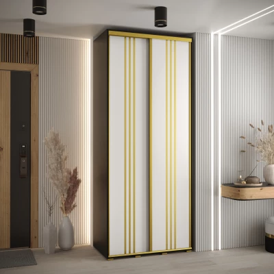 Šatní skříň YVONA 6 - 110/45 cm, černá / bílá / zlatá