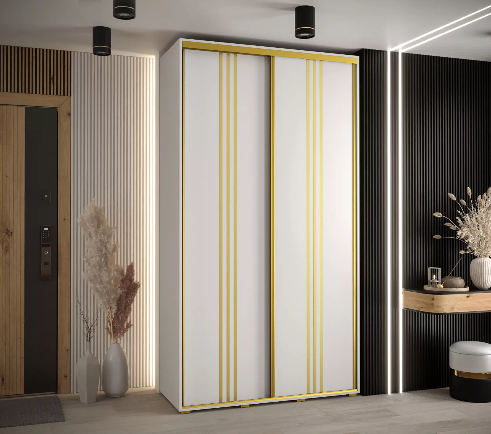 Šatní skříň YVONA 6 - 140/45 cm, bílá / zlatá