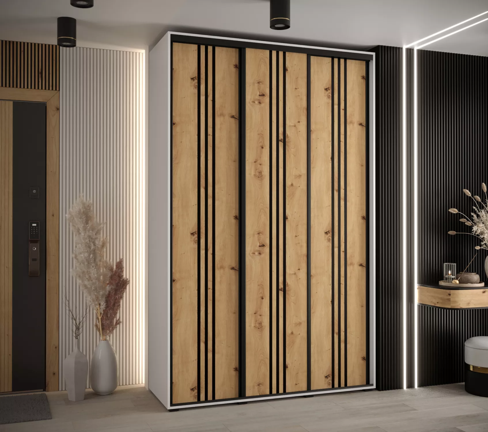 Šatní skříň YVONA 6 - 150/45 cm, bílá / dub artisan / černá