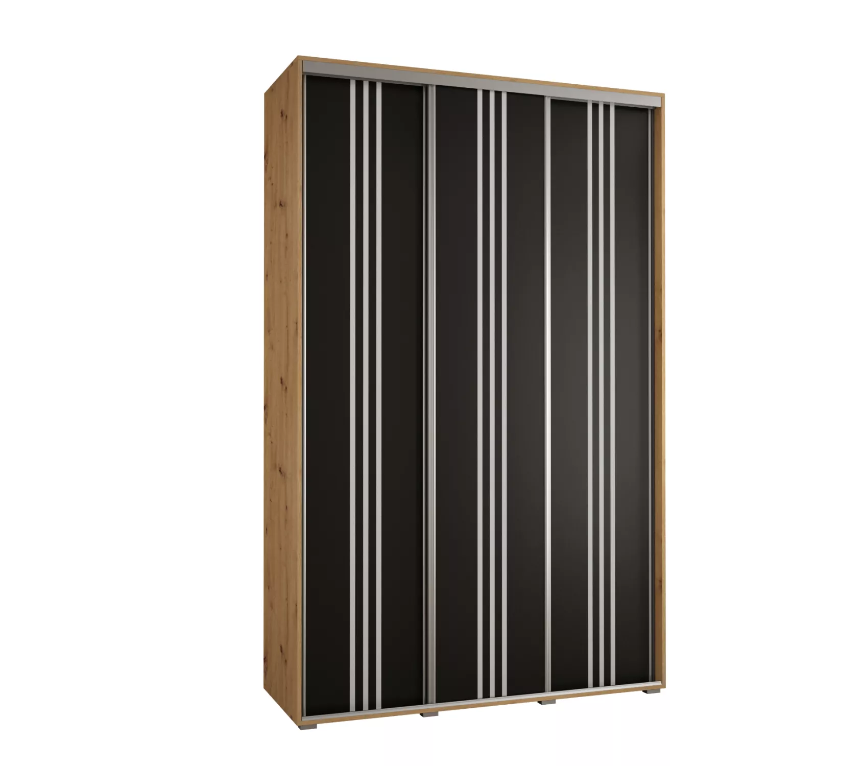 Šatní skříň YVONA 6 - 150/45 cm, dub artisan / černá / stříbrná