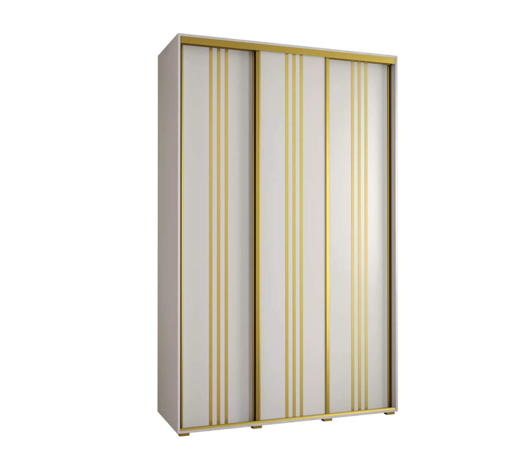 Šatní skříň YVONA 6 - 160/45 cm, bílá / zlatá