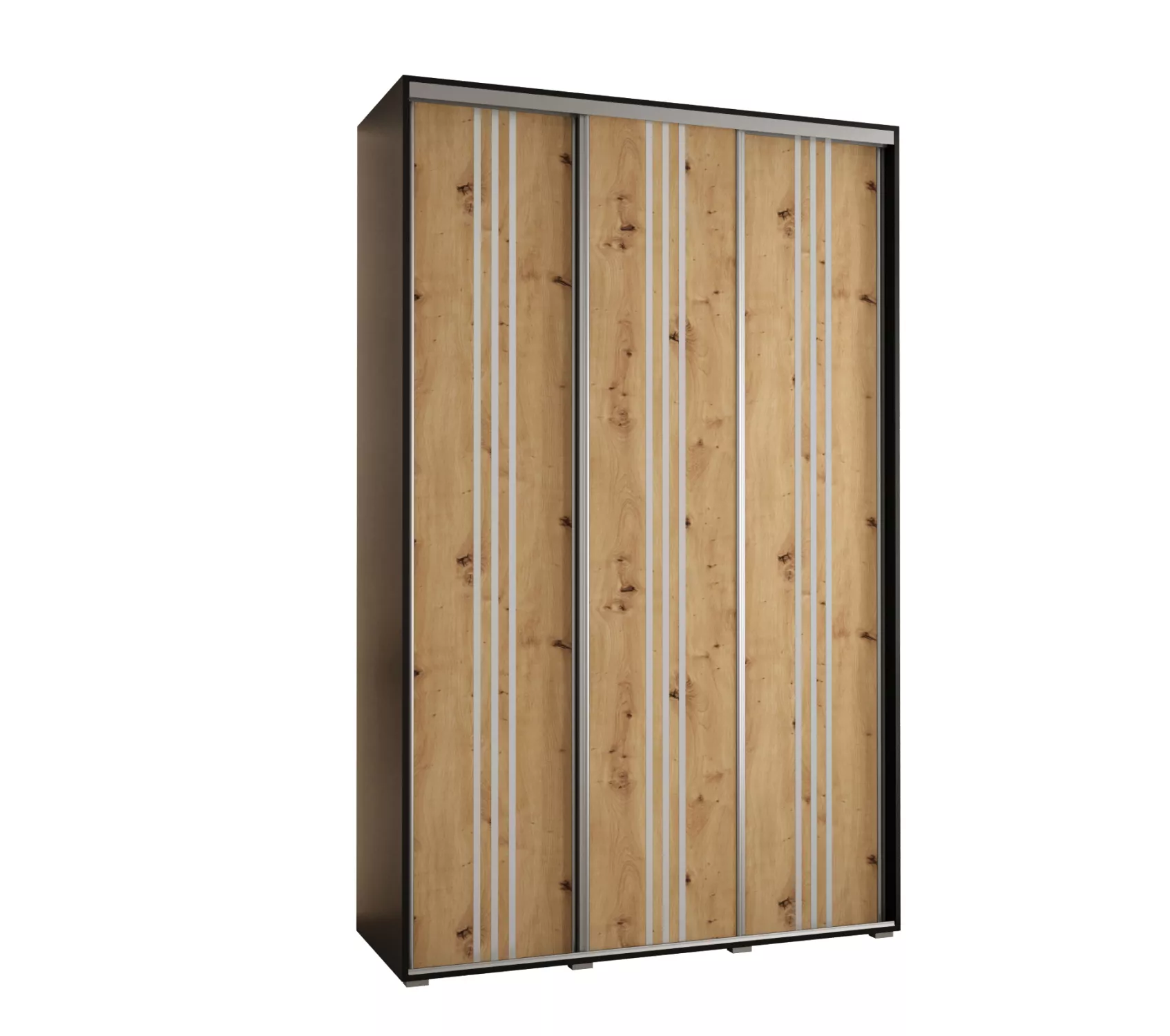 Šatní skříň YVONA 6 - 160/45 cm, černá / dub artisan / stříbrná