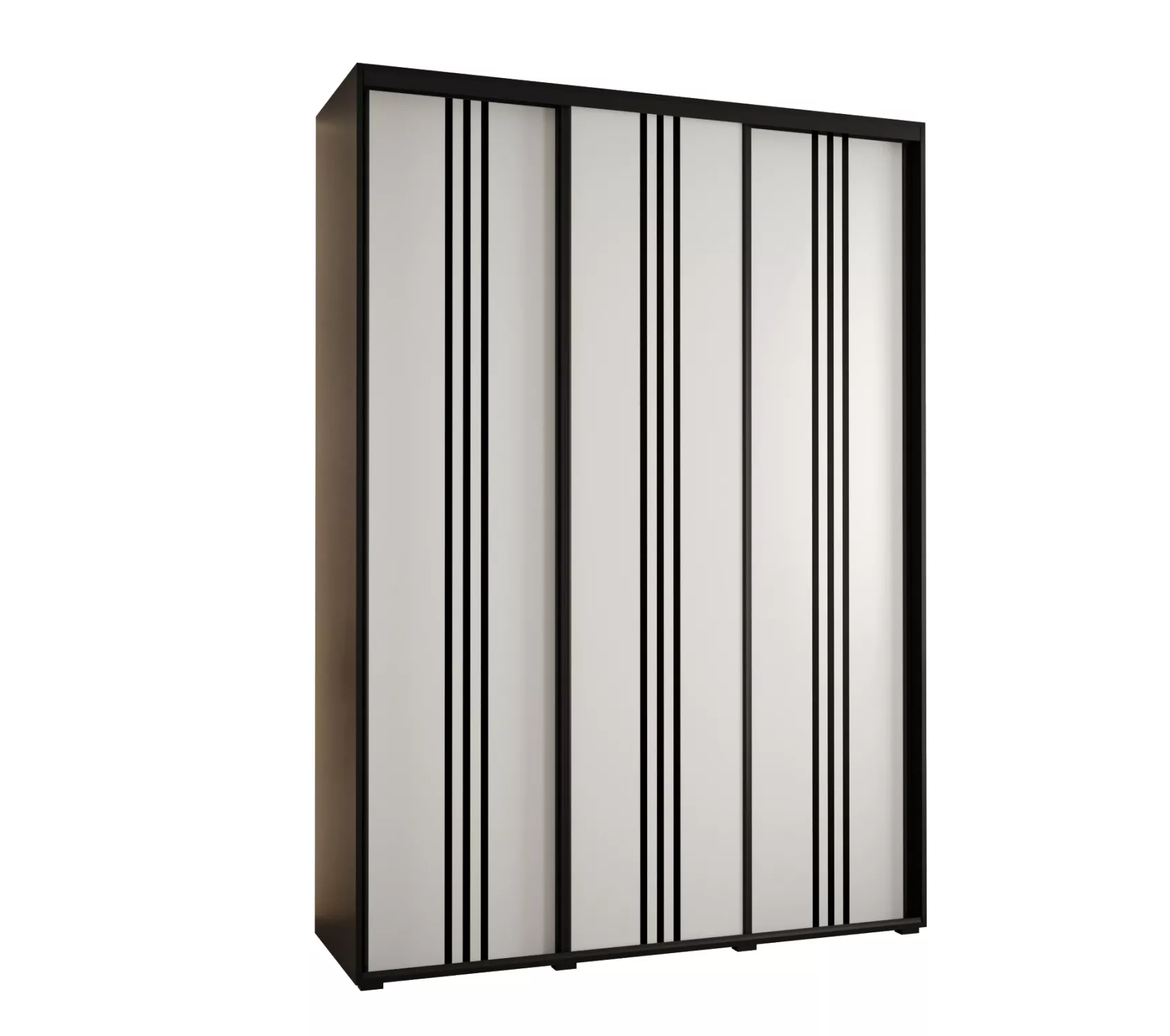Šatní skříň YVONA 6 - 170/45 cm, černá / bílá / černá