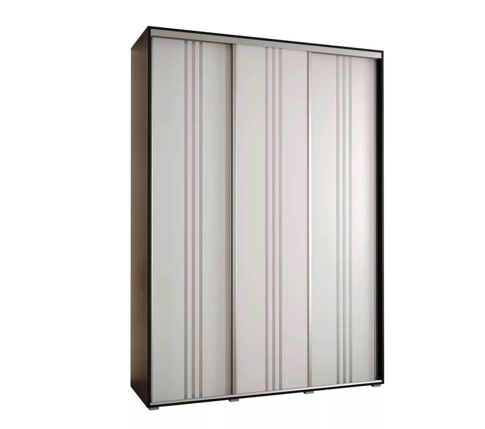 Šatní skříň YVONA 6 - 180/45 cm, černá / bílá / stříbrná