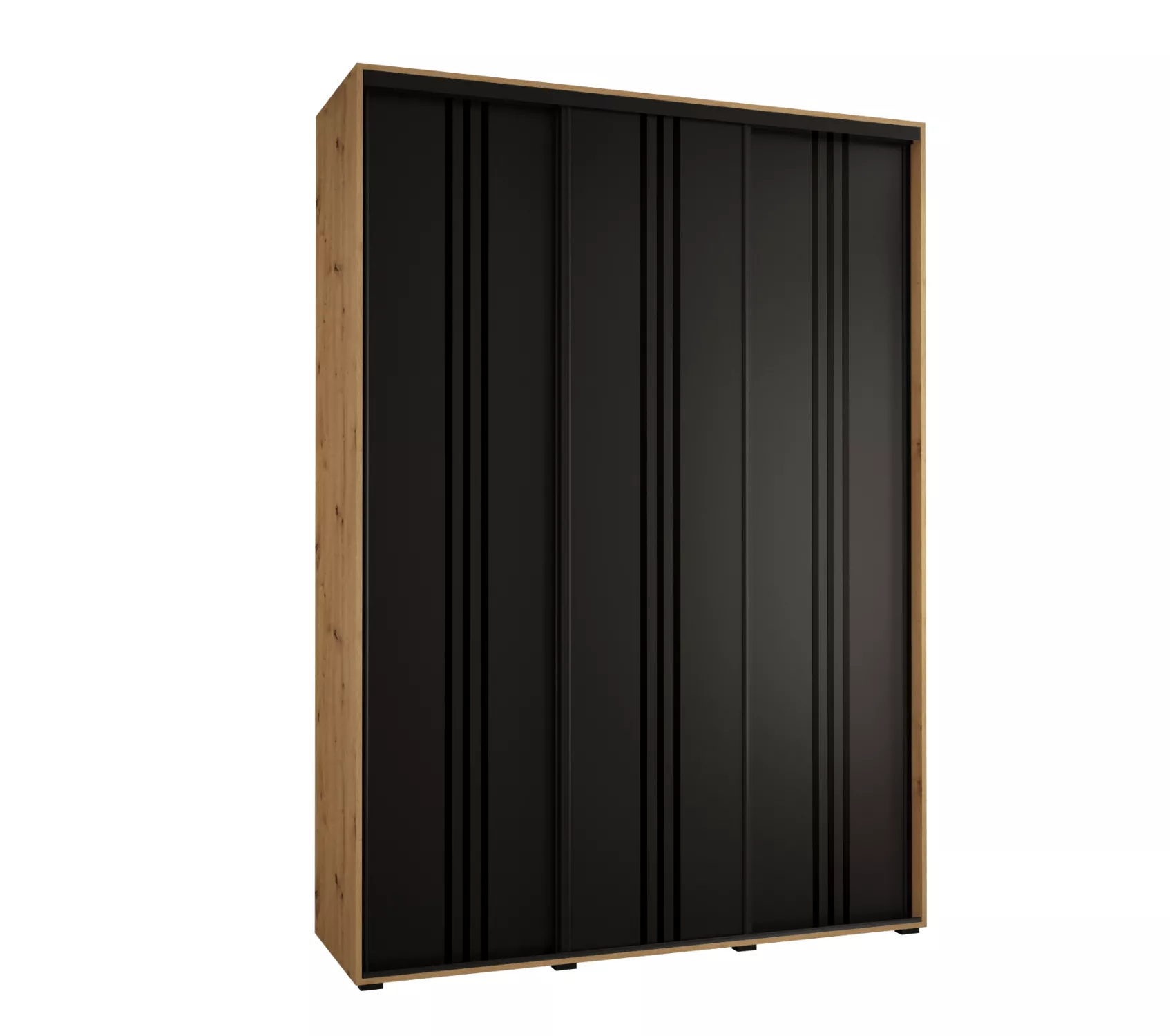 Šatní skříň YVONA 6 - 180/45 cm, dub artisan / černá / černá