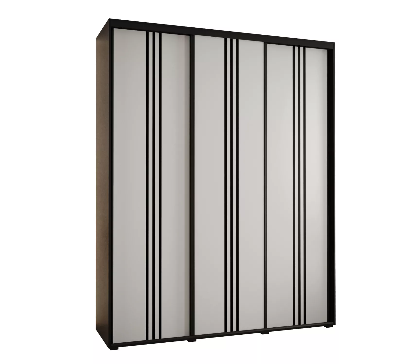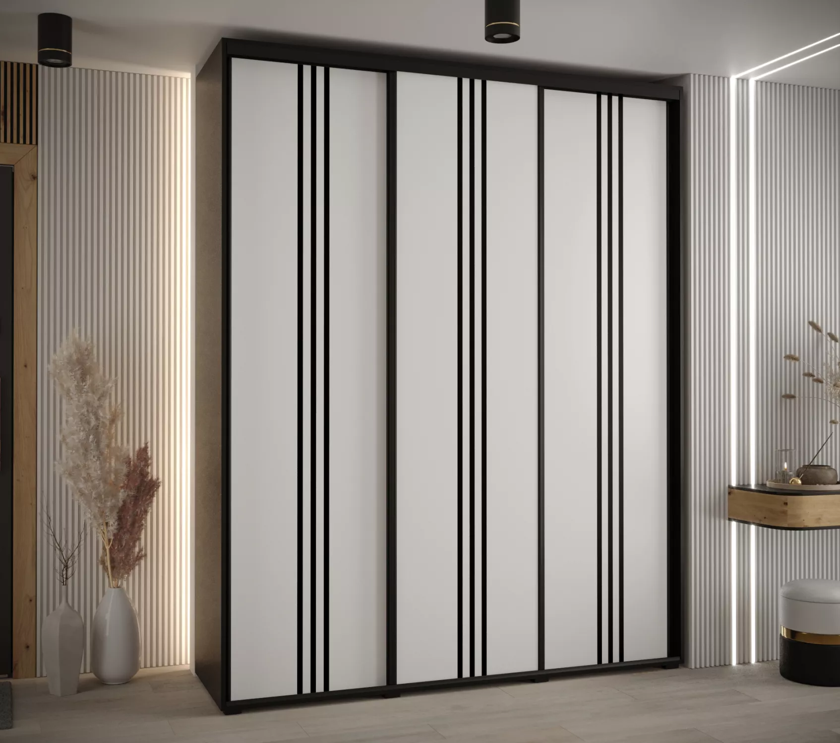 Šatní skříň YVONA 6 - 200/45 cm, černá / bílá / černá