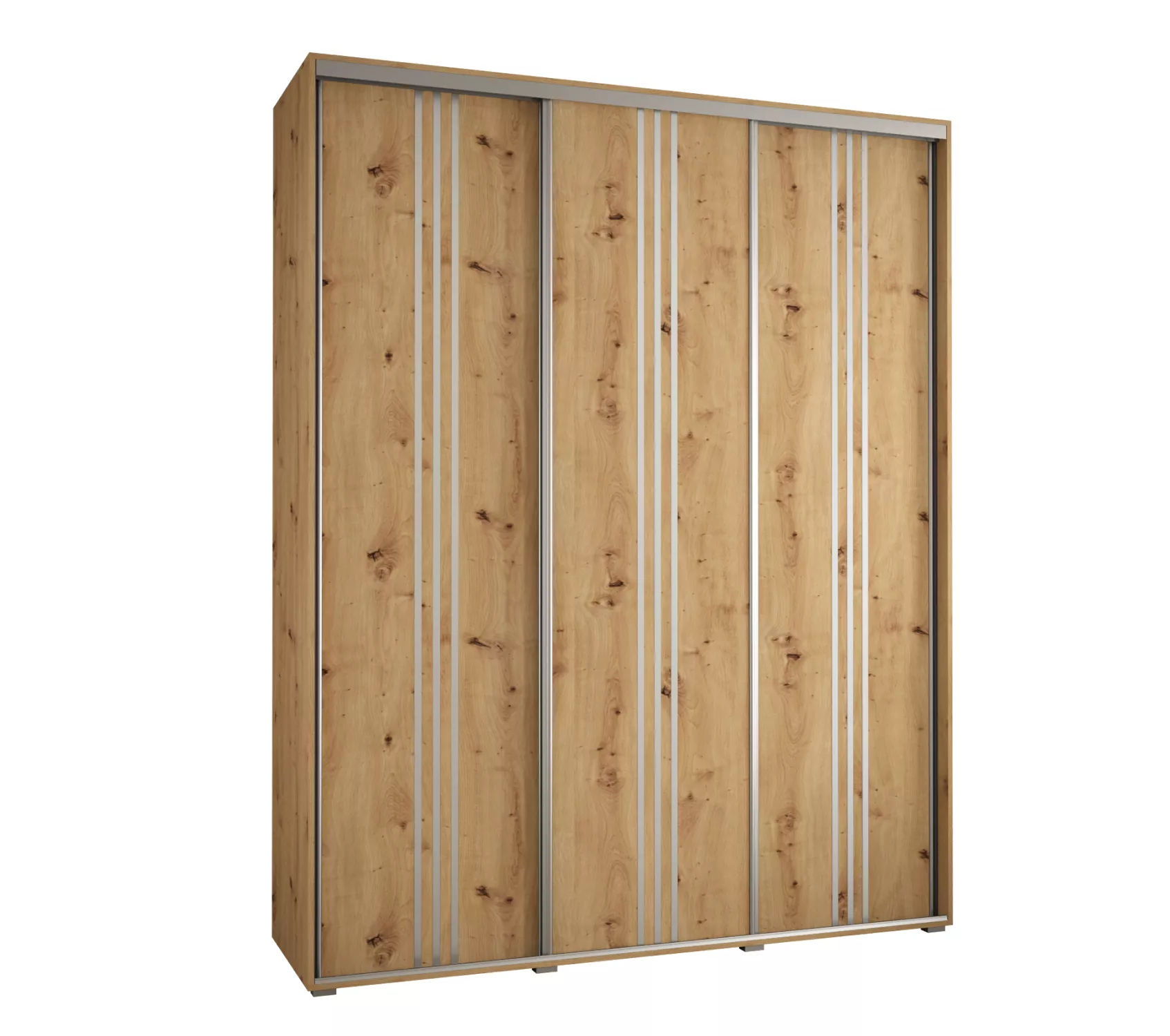 Šatní skříň YVONA 6 - 200/45 cm, dub artisan / stříbrná