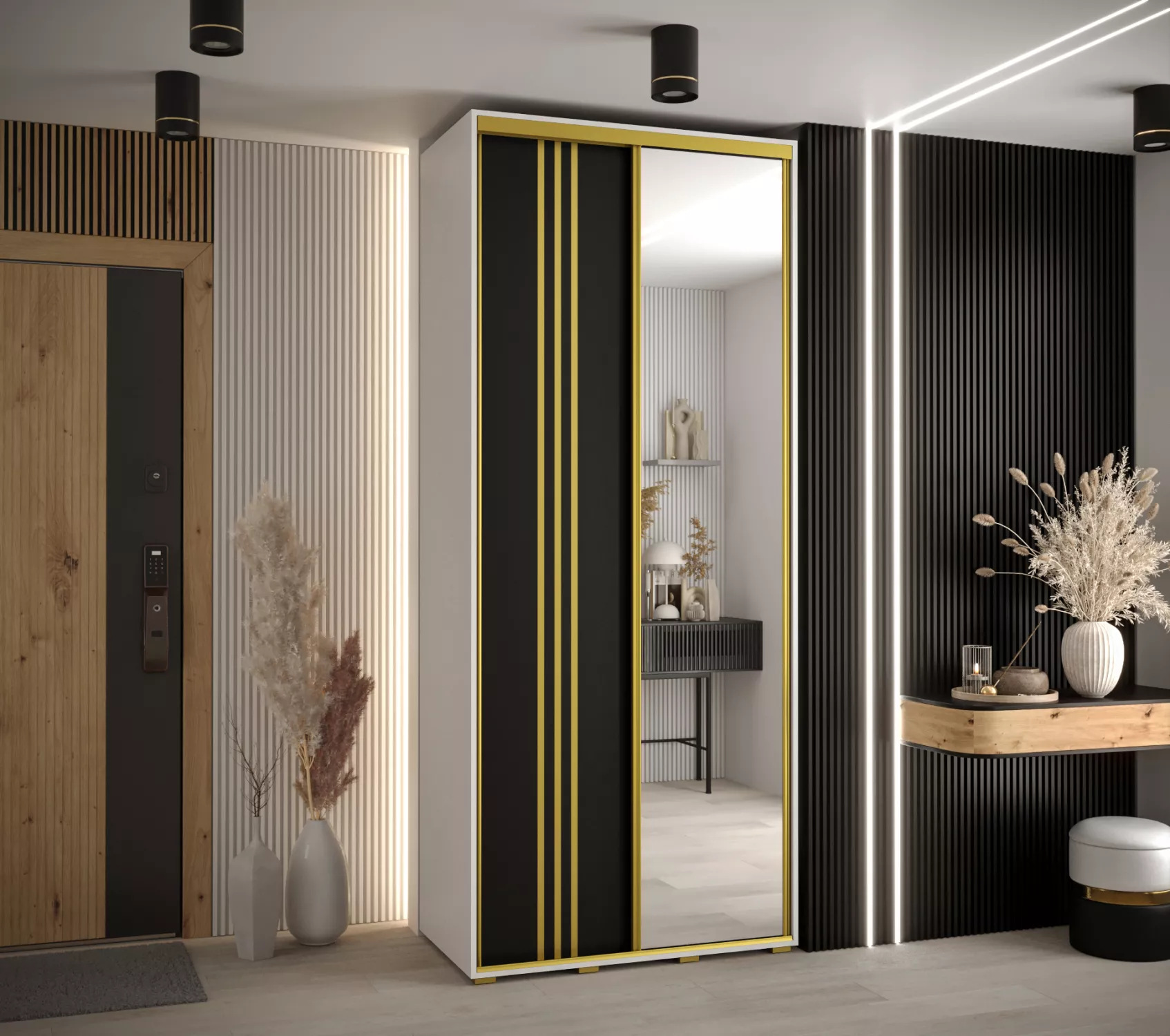 Šatní skříň YVONA 7 - 110/45 cm, bílá / černá / zlatá