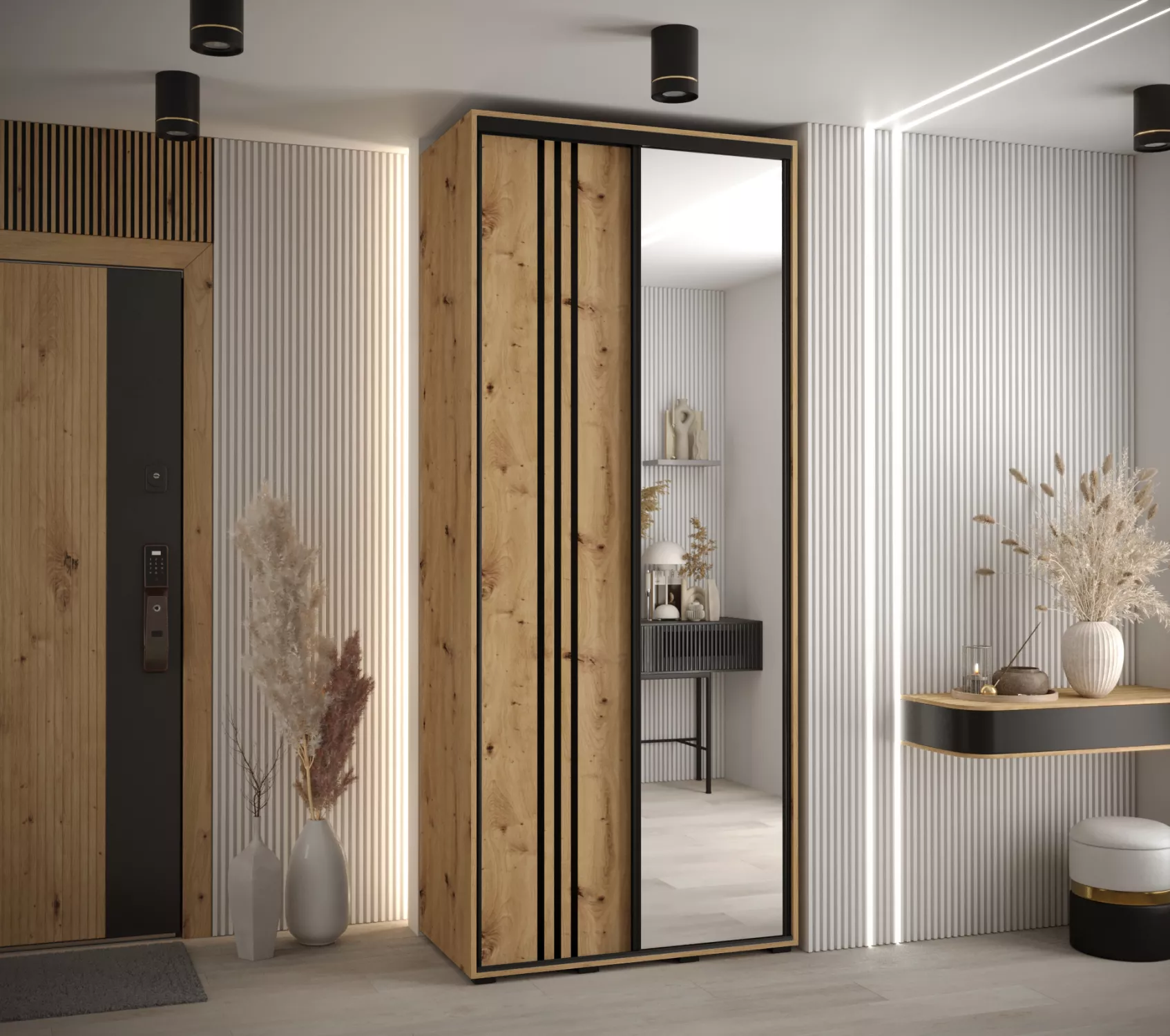 Šatní skříň YVONA 7 - 110/45 cm, dub artisan / černá