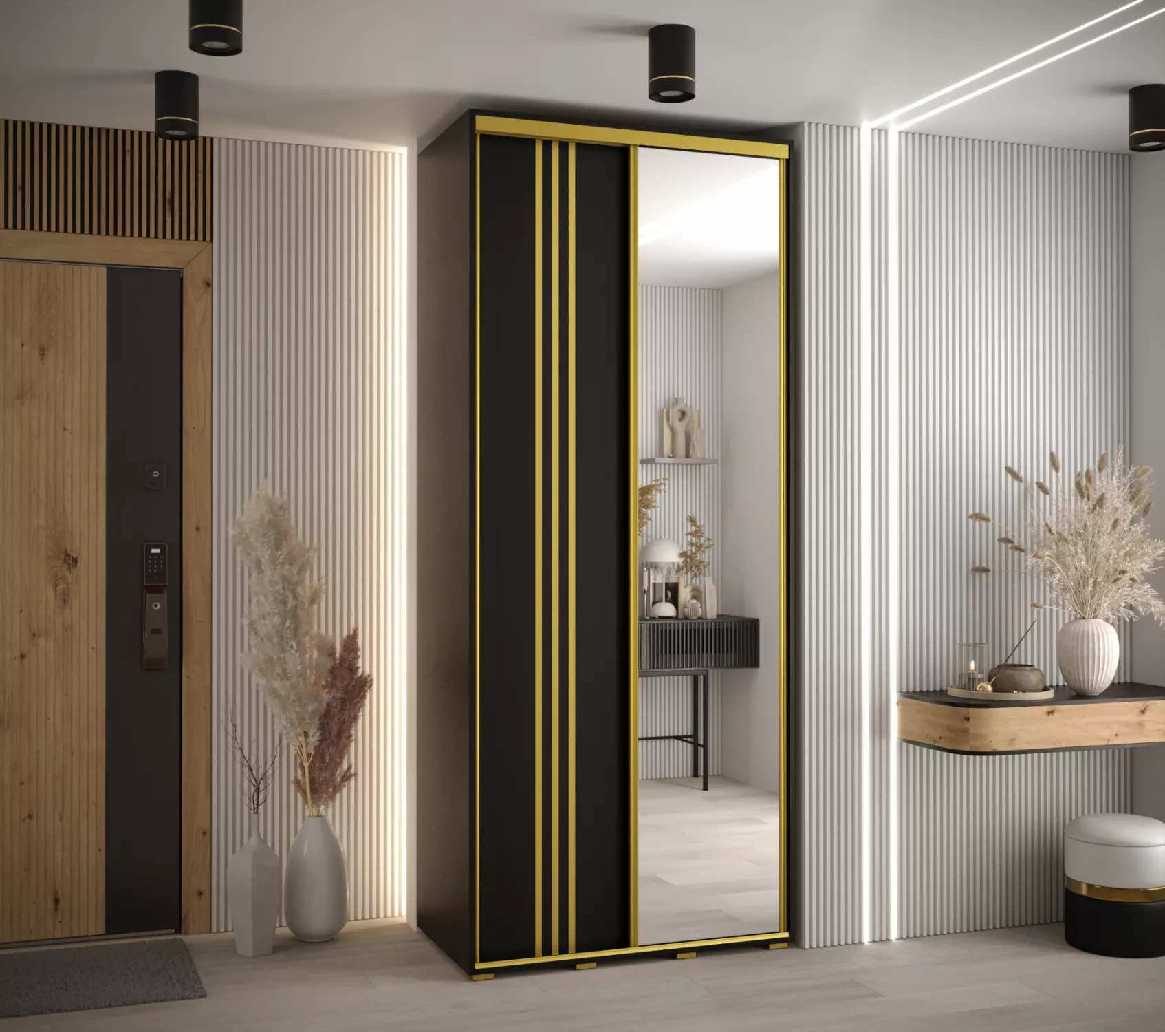 Šatní skříň YVONA 7 - 120/45 cm, černá / zlatá