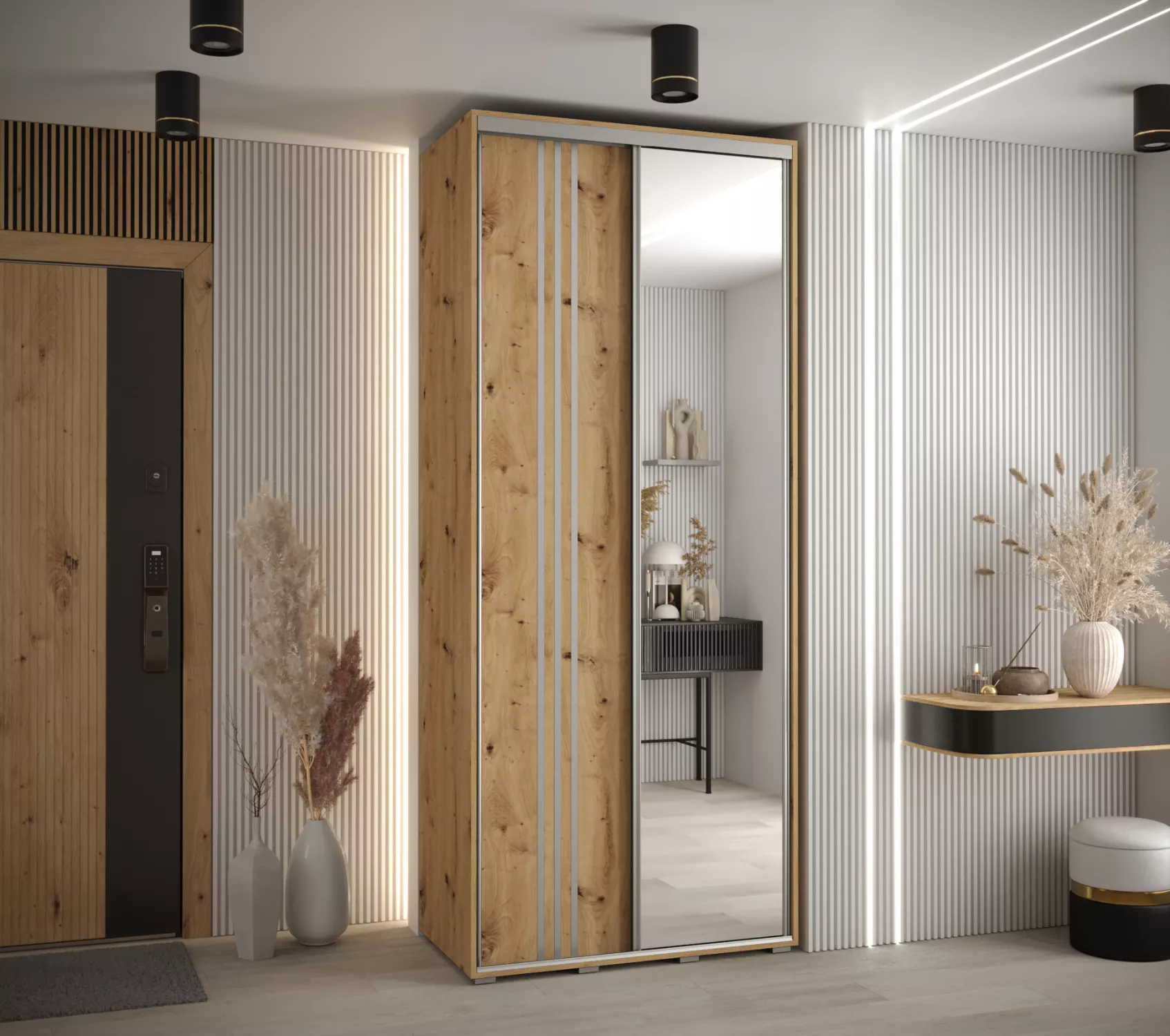 Šatní skříň YVONA 7 - 120/45 cm, dub artisan / stříbrná