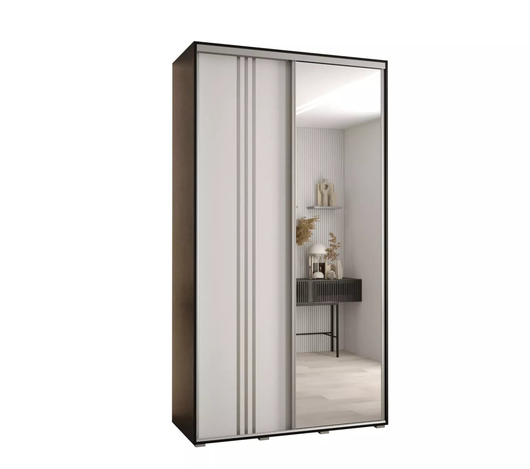 Šatní skříň YVONA 7 - 140/45 cm, černá / bílá / stříbrná