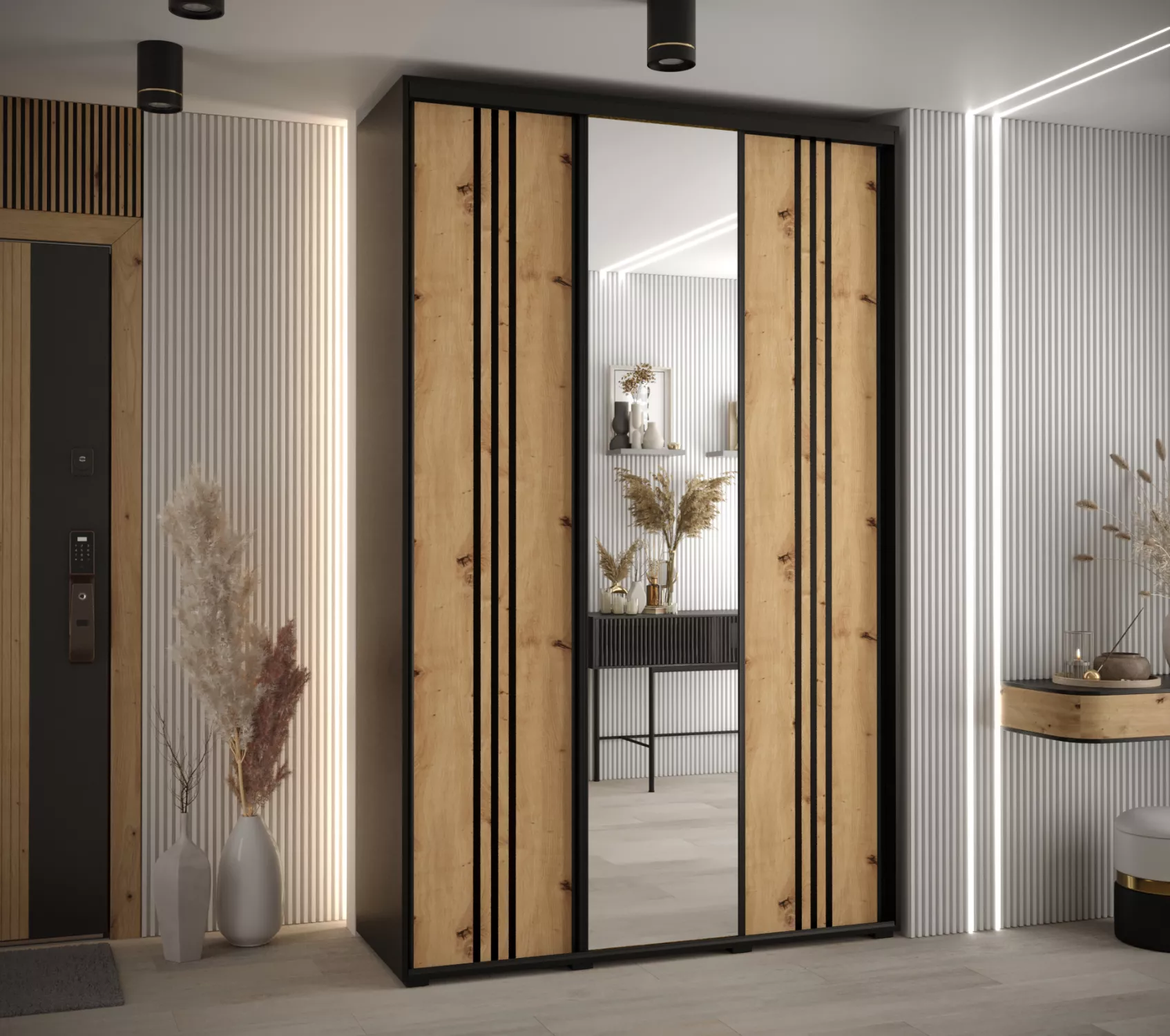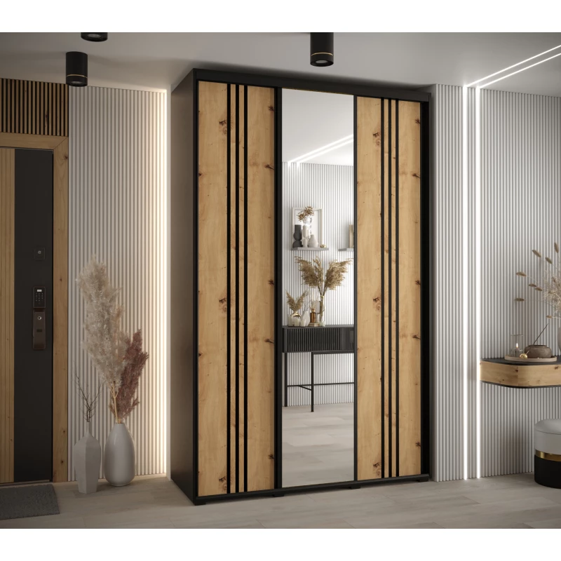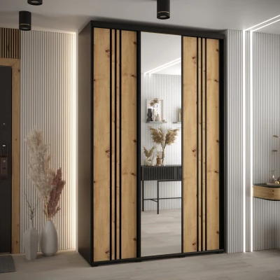Šatní skříň YVONA 7 - 150/45 cm, černá / dub artisan / černá