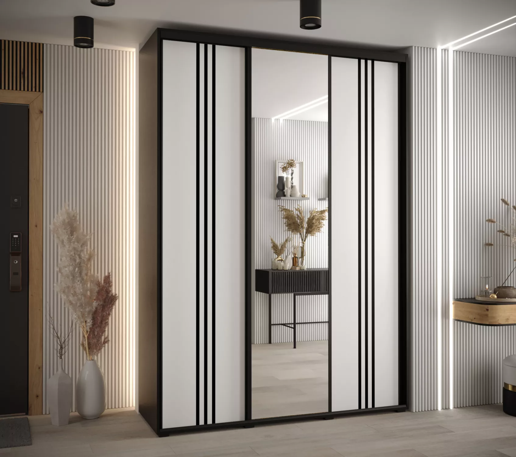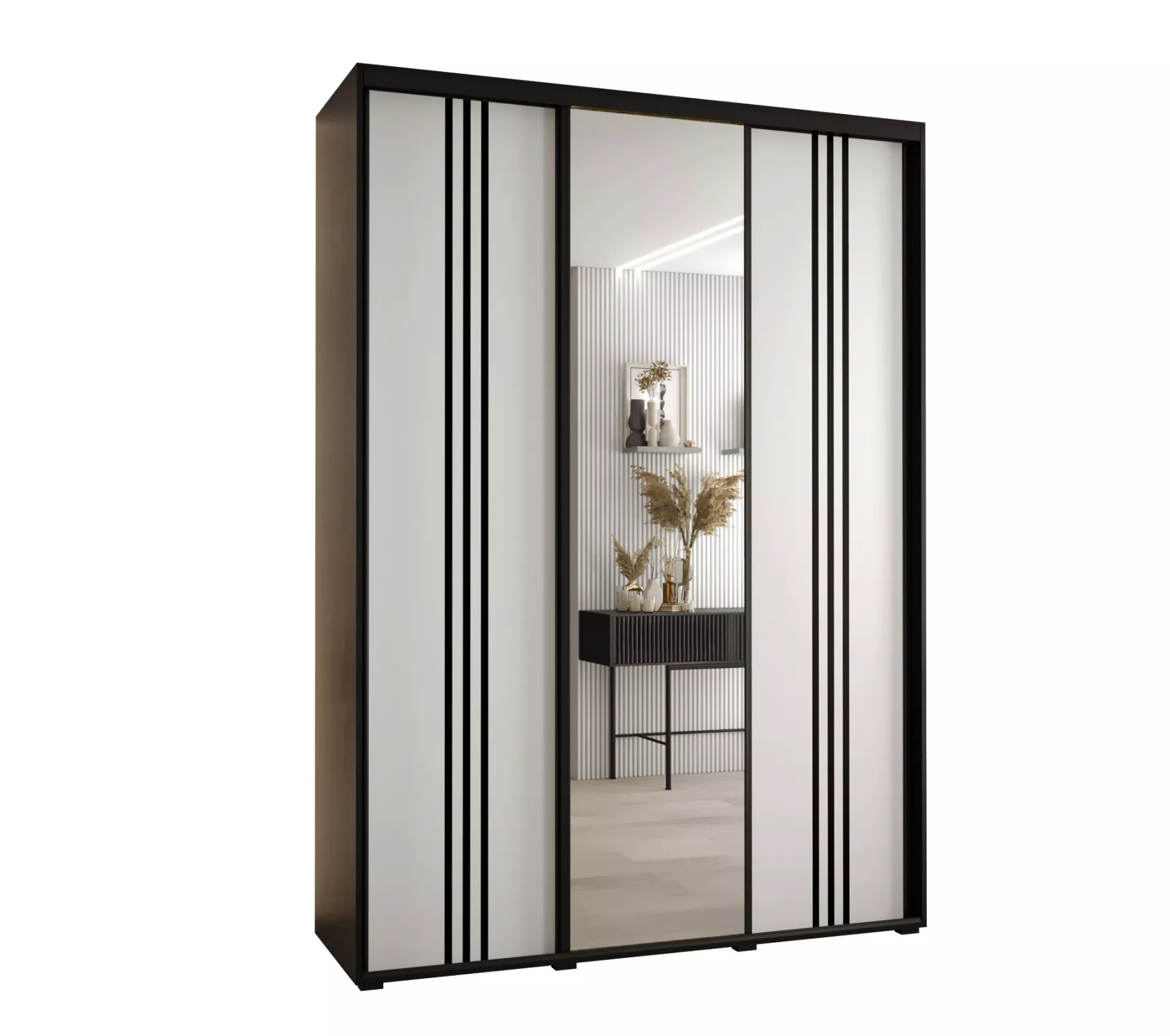 Šatní skříň YVONA 7 - 170/45 cm, černá / bílá / černá