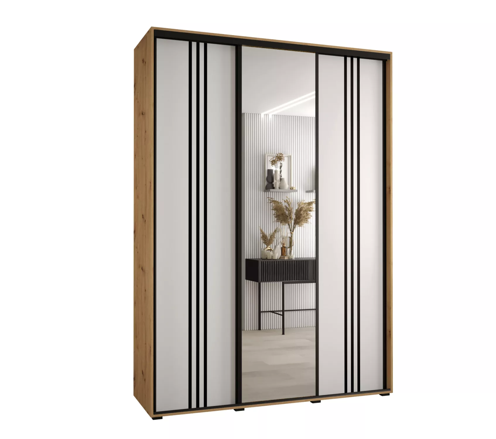 Šatní skříň YVONA 7 - 170/45 cm, dub artisan / bílá / černá