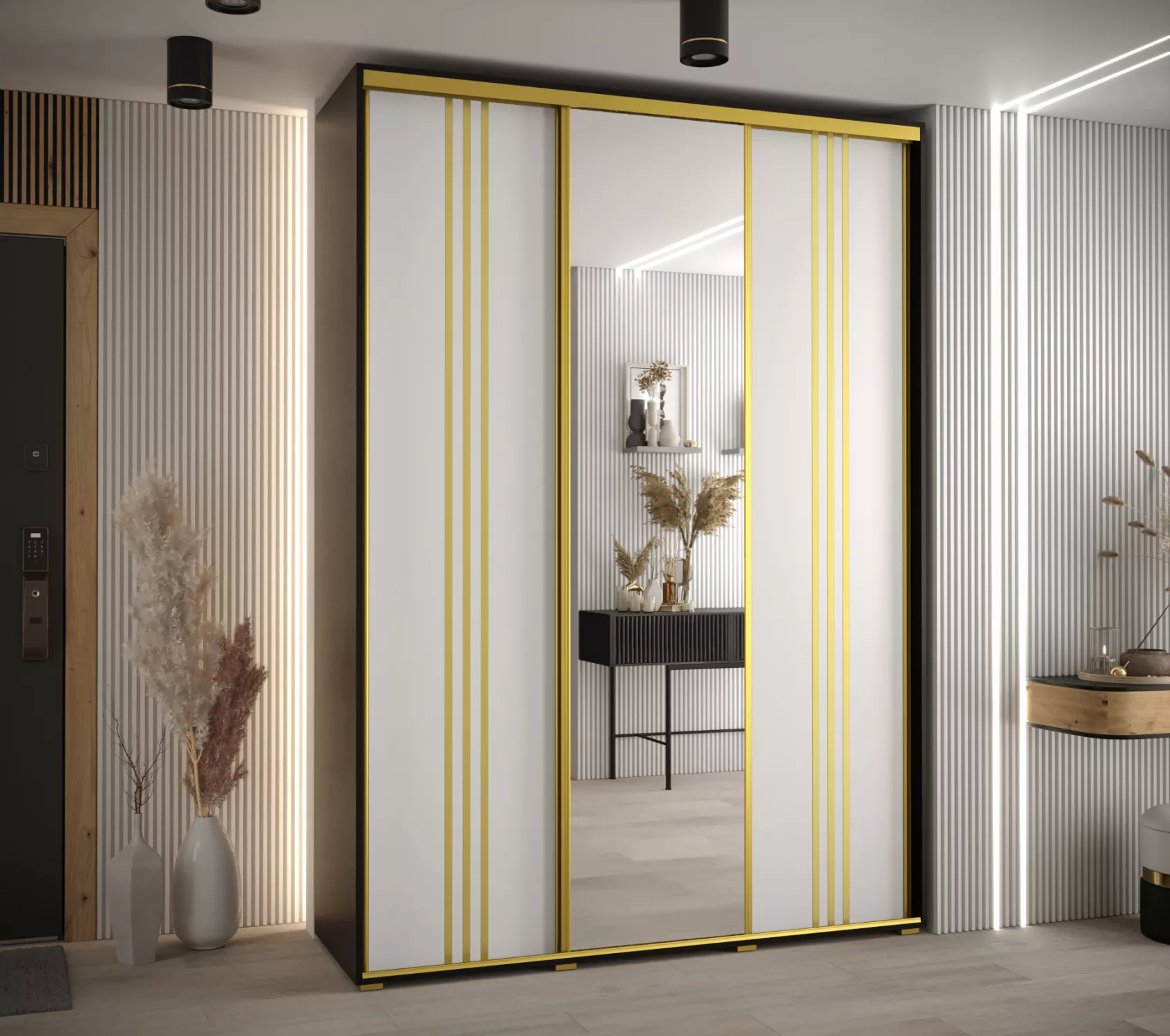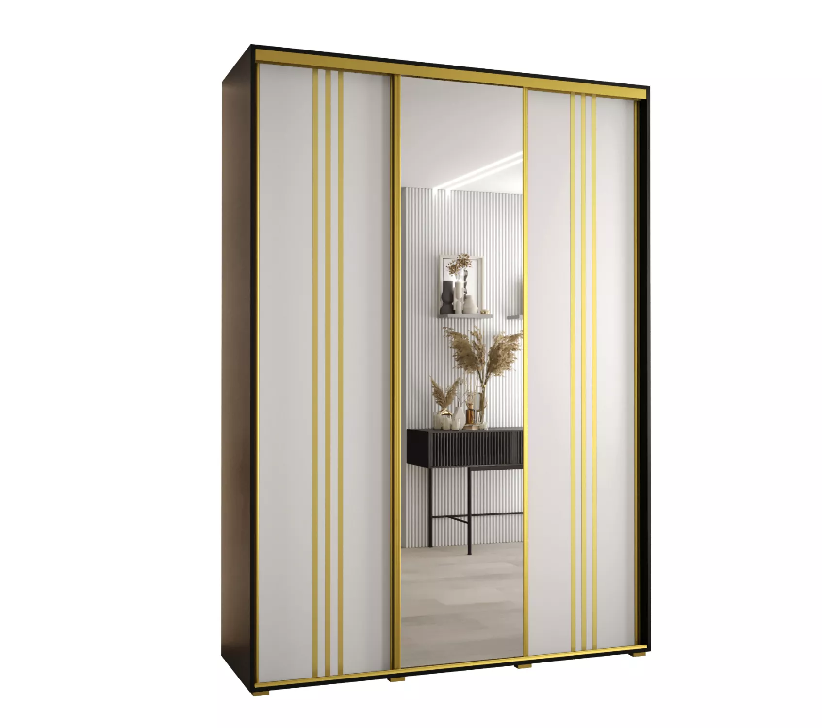 Šatní skříň YVONA 7 - 180/45 cm, černá / bílá / zlatá