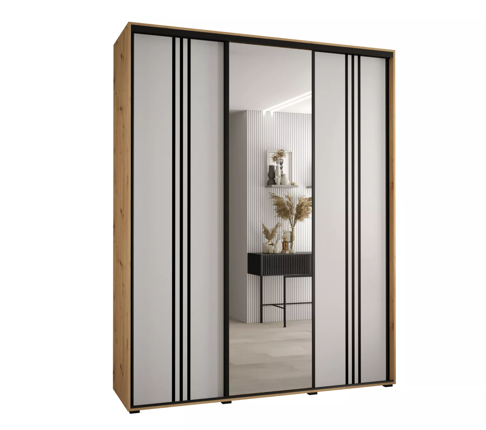 Šatní skříň YVONA 7 - 200/45 cm, dub artisan / bílá / černá