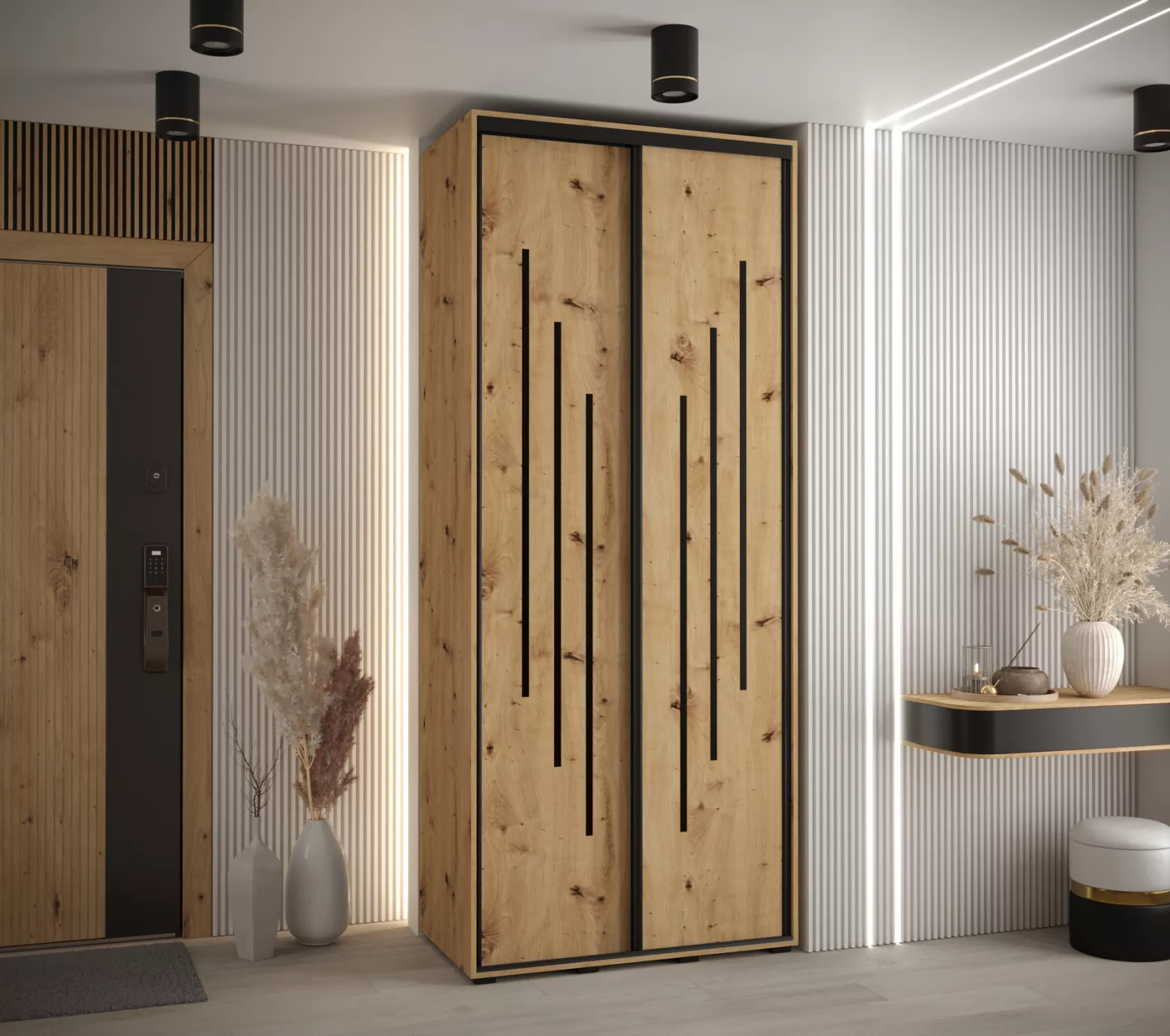 Šatní skříň YVONA 8 - 110/45 cm, dub artisan / černá