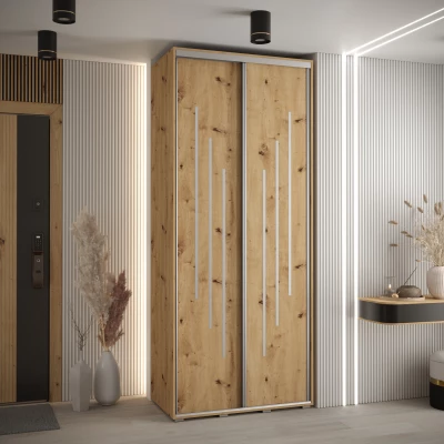 Šatní skříň YVONA 8 - 120/45 cm, dub artisan / stříbrná