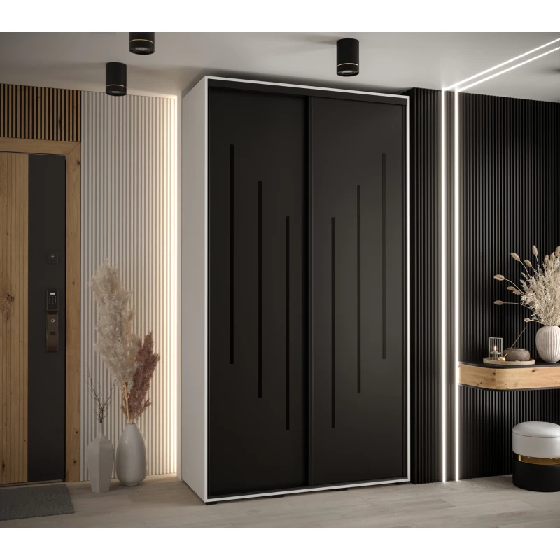 Šatní skříň YVONA 8 - 130/45 cm, bílá / černá / černá