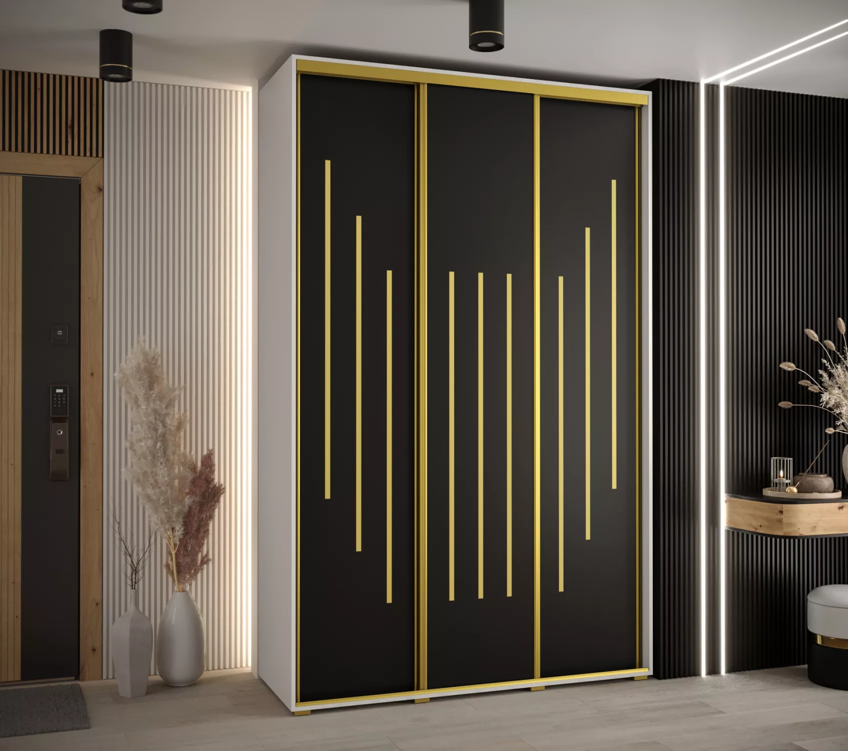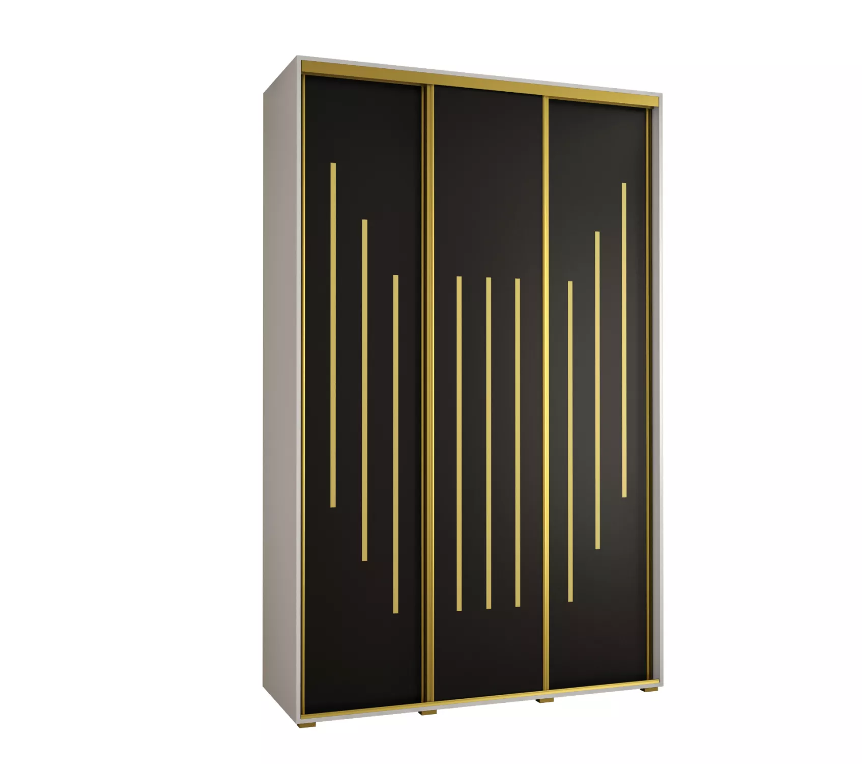 Šatní skříň YVONA 8 - 160/45 cm, bílá / černá / zlatá