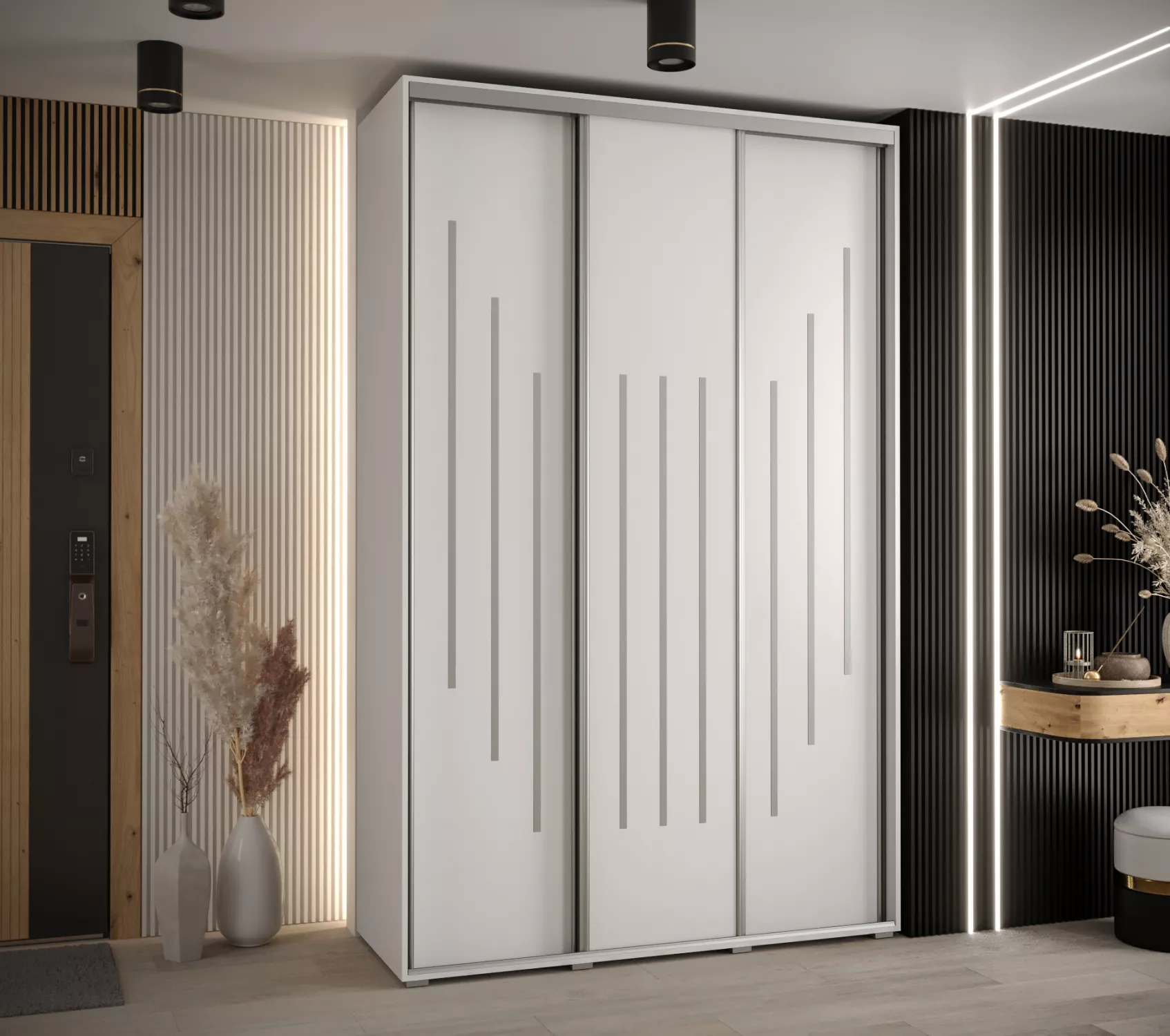 Šatní skříň YVONA 8 - 160/45 cm, bílá / stříbrná