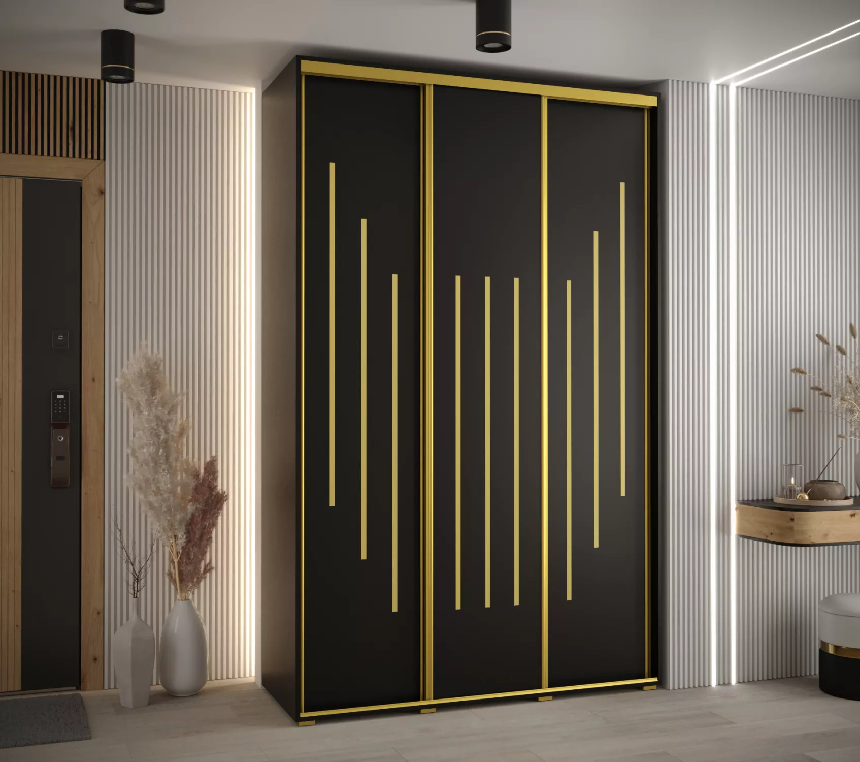 Šatní skříň YVONA 8 - 160/45 cm, černá / zlatá