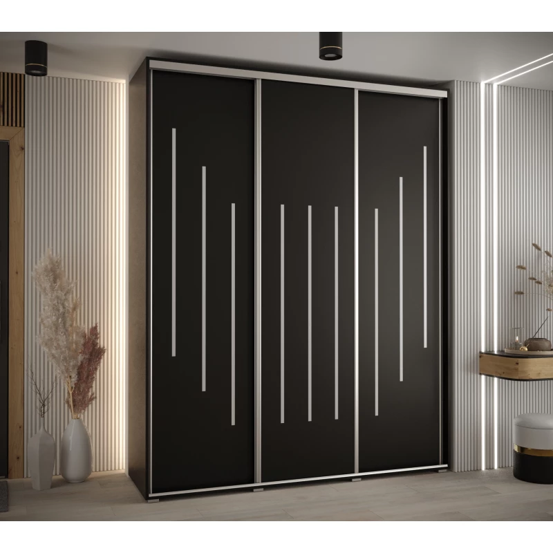 Šatní skříň YVONA 8 - 190/45 cm, černá / stříbrná