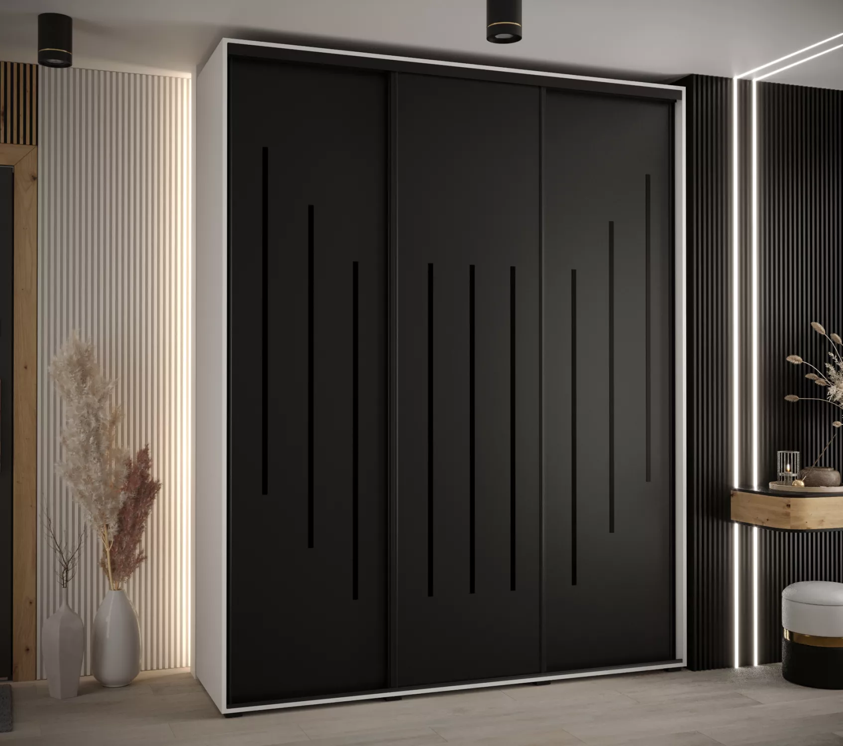 Šatní skříň YVONA 8 - 200/45 cm, bílá / černá / černá