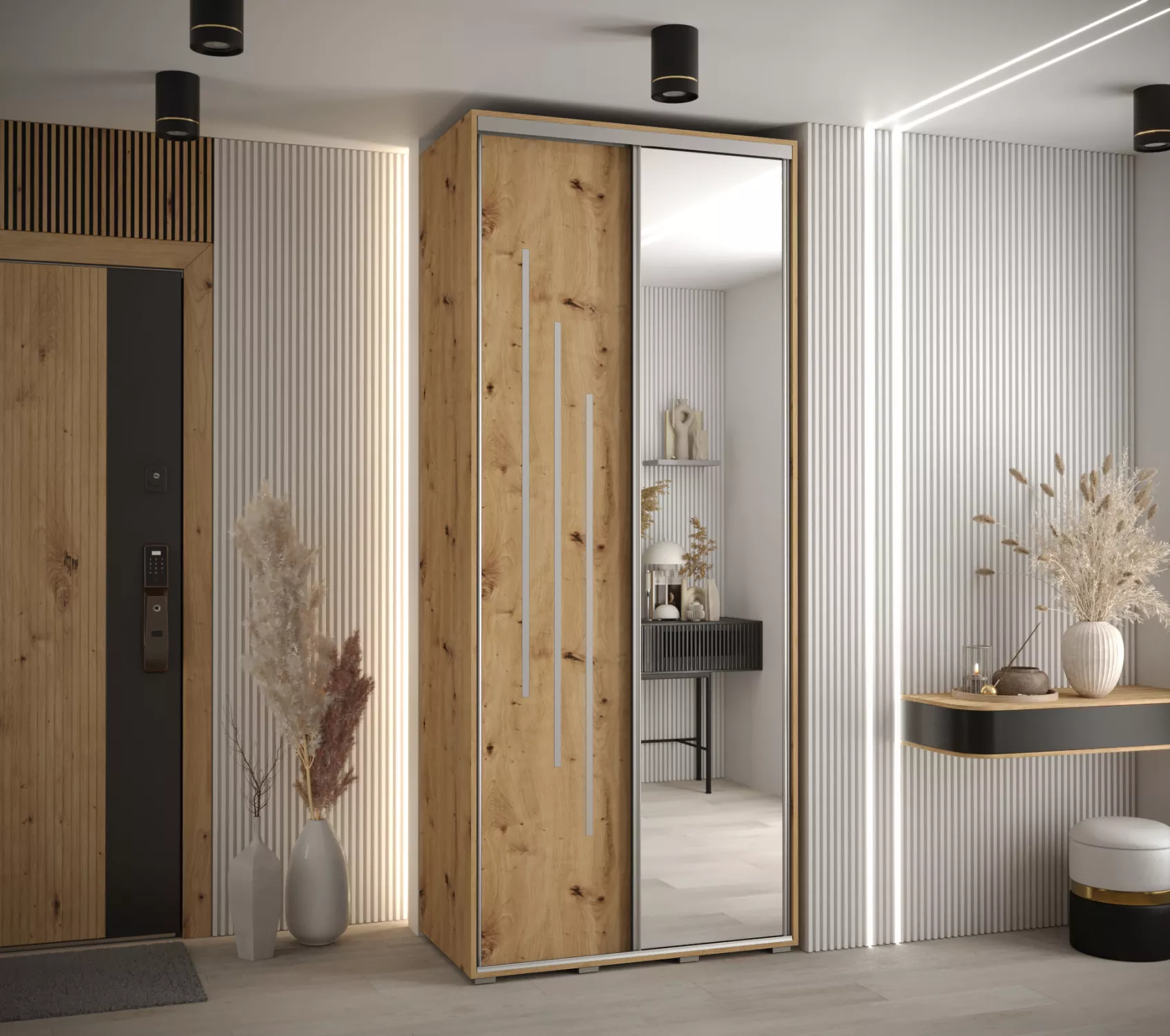 Šatní skříň YVONA 9 - 100/45 cm, dub artisan / stříbrná