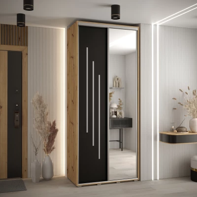 Šatní skříň YVONA 9 - 110/45 cm, dub artisan / černá / stříbrná