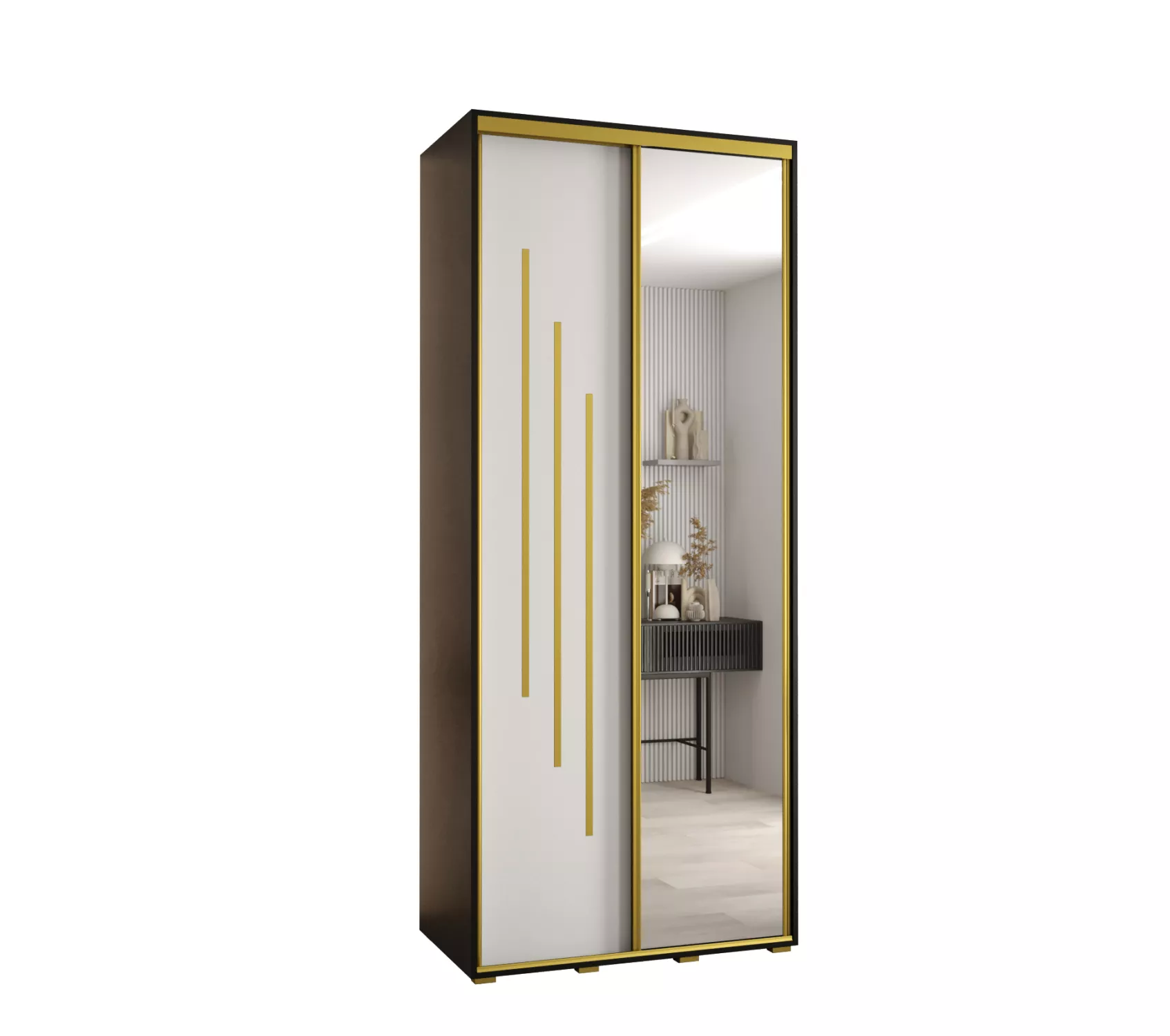 Šatní skříň YVONA 9 - 120/45 cm, černá / bílá / zlatá
