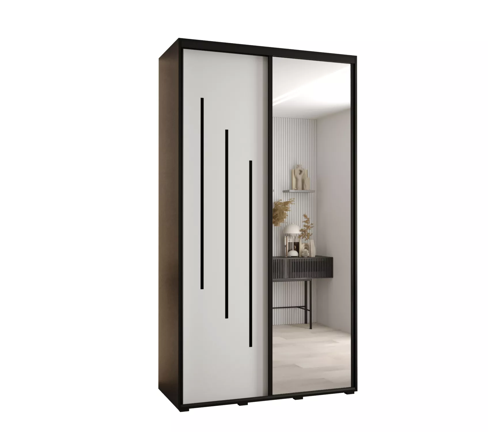 Šatní skříň YVONA 9 - 130/45 cm, černá / bílá / černá