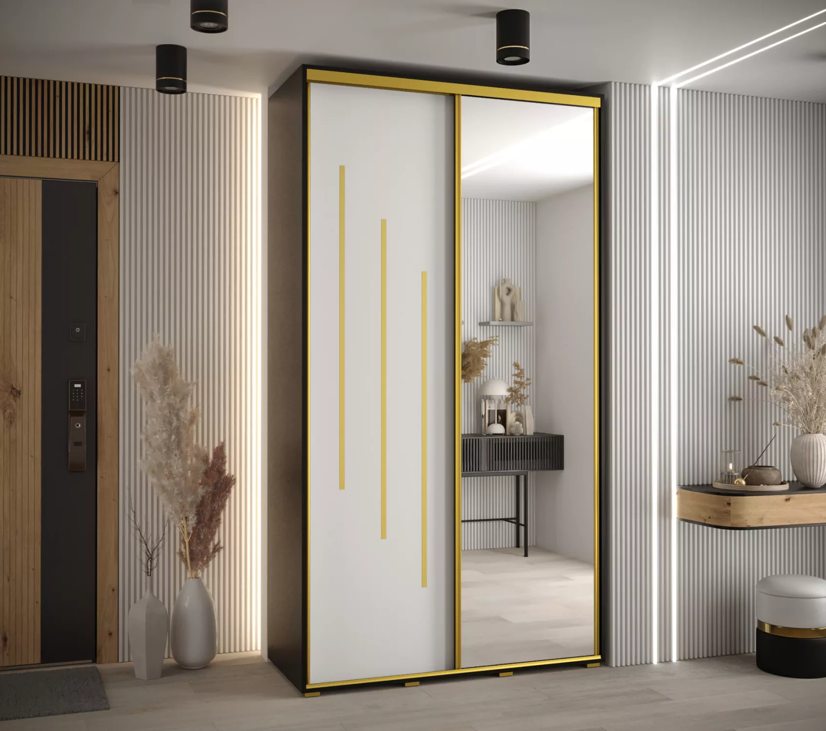 Šatní skříň YVONA 9 - 130/45 cm, černá / bílá / zlatá