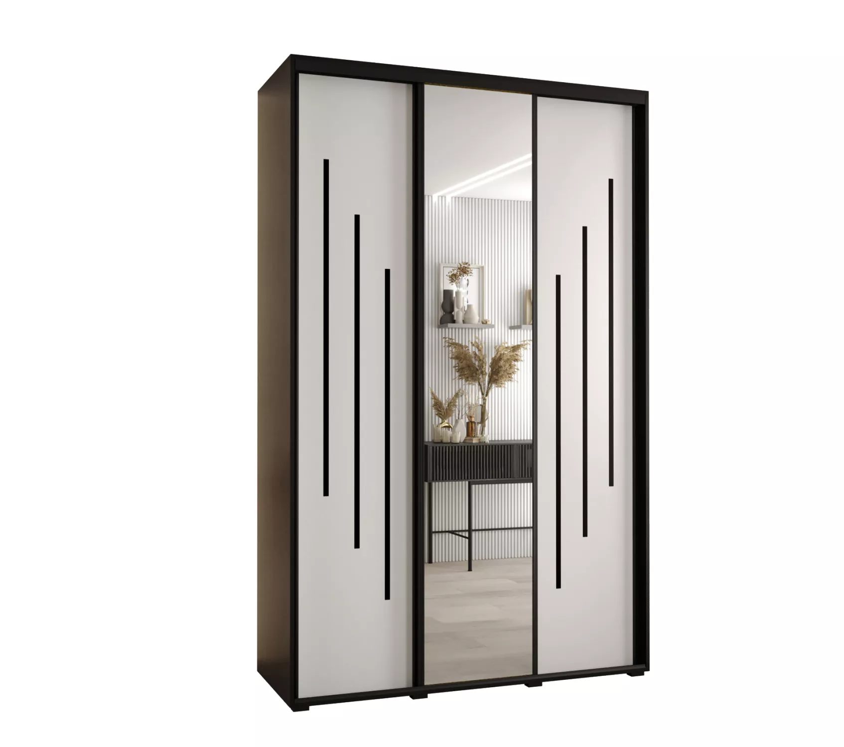 Šatní skříň YVONA 9 - 150/45 cm, černá / bílá / černá
