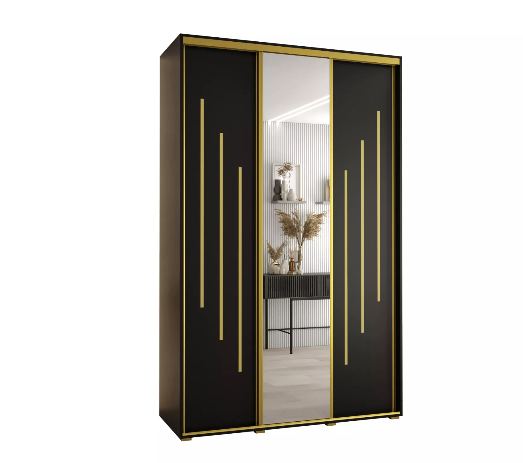 Šatní skříň YVONA 9 - 160/45 cm, černá / zlatá