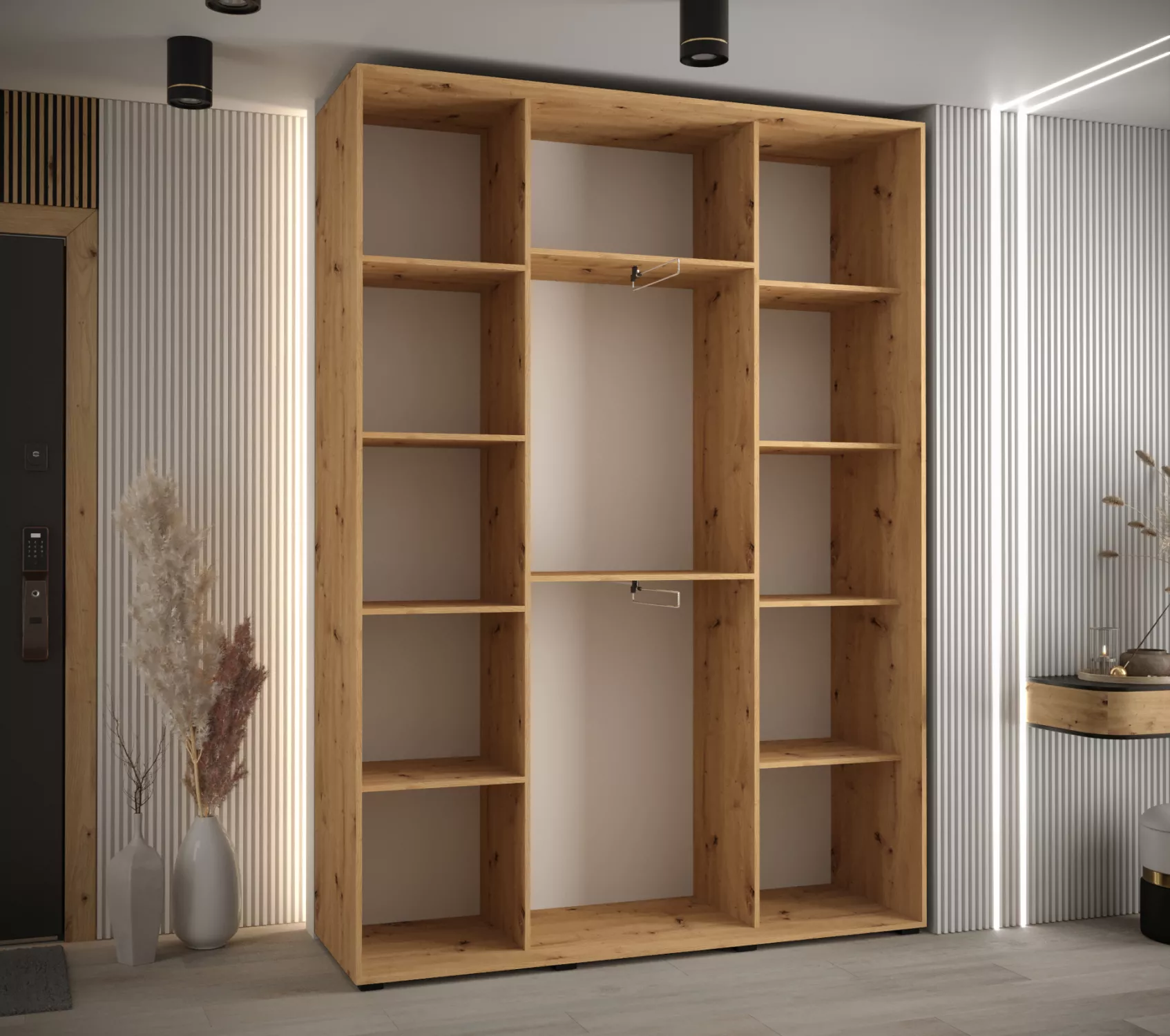 Šatní skříň YVONA 9 - 160/45 cm, dub artisan / stříbrná